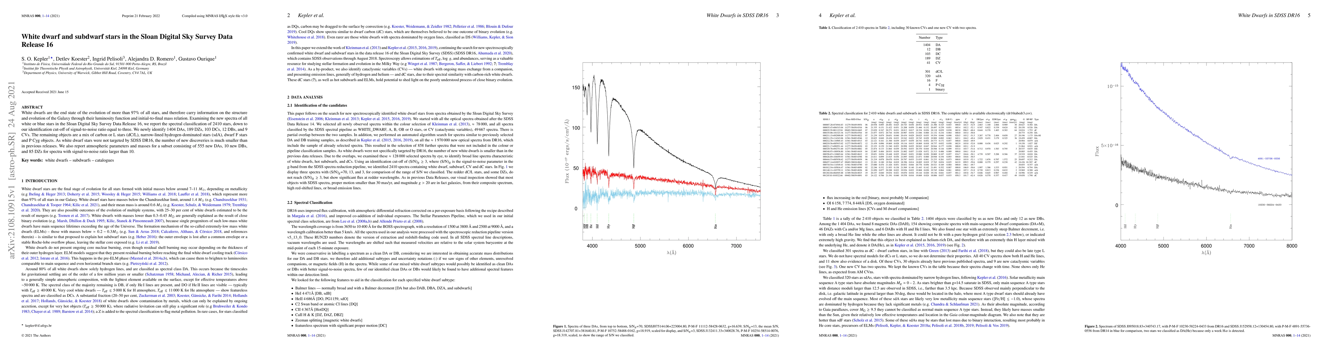 This paper reports the spectral classification of 2410 white dwarf and subdwarf stars identified in the Sloan Digital Sky Survey Data Release 16, including new classifications of DA, DZ, DC, DB, and CV types. It also provides atmospheric parameters and masses for a subset of these stars.
