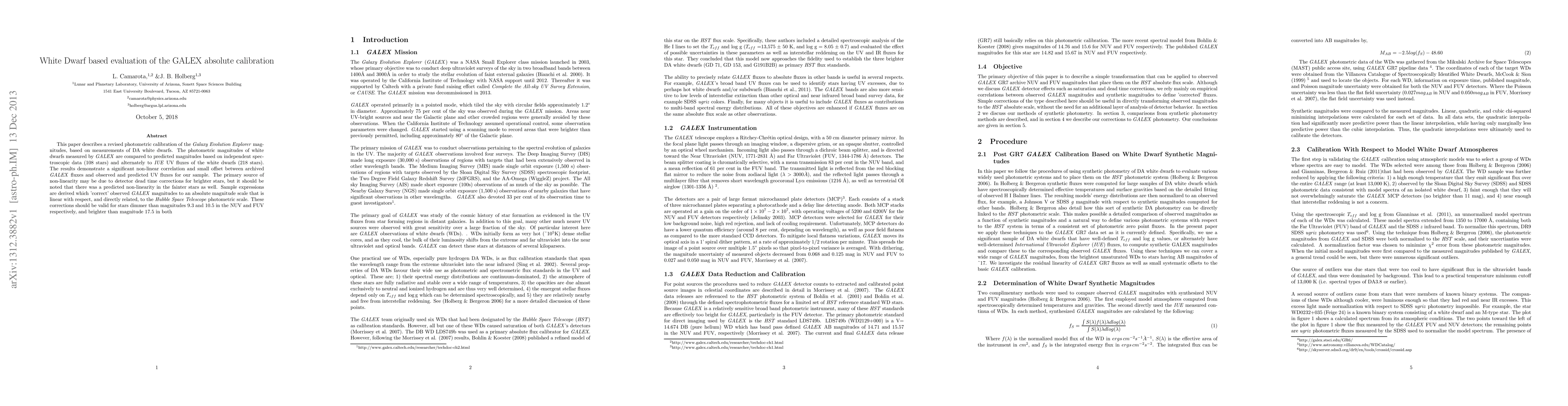 This paper revises the \emph{GALEX} absolute calibration using DA white dwarfs, revealing a non-linear correlation and small offset in archived fluxes. Corrections are derived to align \emph{GALEX} magnitudes with the \emph{Hubble Space Telescope} photometric scale, valid for stars brighter than magnitude 17.5.
