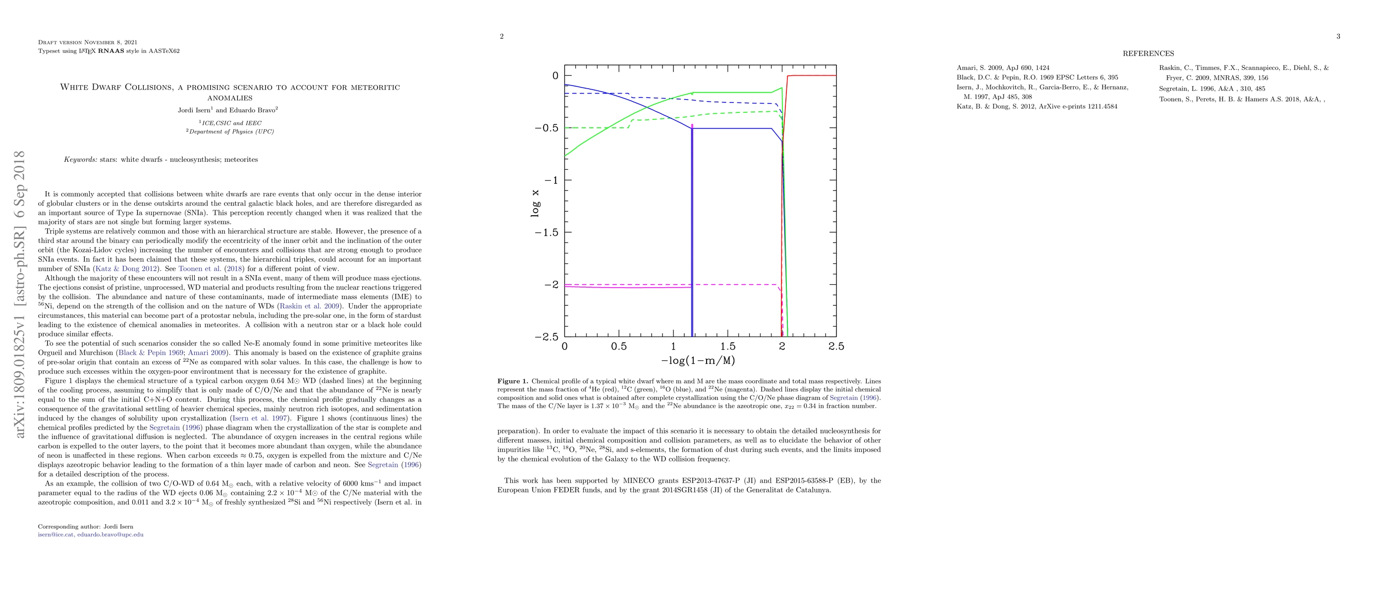 It is commonly accepted that collisions between white dwarfs (WD) are rare events that only occur in the dense interior of globular clusters or in the dense outskirts around the central galactic black holes, and are therefore disregarded as an important source of Type Ia supernovae (SNIa). Although the majority of these encounters will not result in a SNIa event, many of them will produce mass ejections. Under the appropriate circumstances, this material can become part of a protostar nebula, including the pre-solar one, in the form of stardust leading to the existence of chemical anomalies in meteorites. We describe a WD-WD collision scenario that potentially might explain the so called Ne-E anomaly found in some primitive meteorites like Orgueil and Murchison.