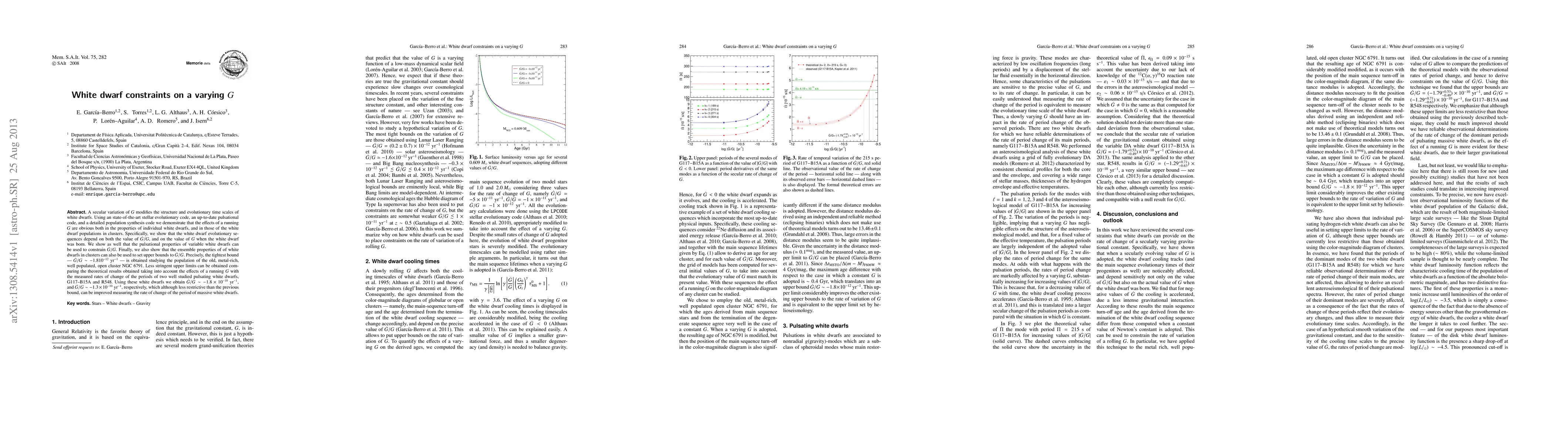 A secular variation of $G$ modifies the structure and evolutionary time scales of white dwarfs. Using an state-of-the-art stellar evolutionary code, an up-to-date pulsational code, and a detailed population synthesis code we demonstrate that the effects of a running $G$ are obvious both in the properties of individual white dwarfs, and in those of the white dwarf populations in clusters. Specifically, we show that the white dwarf evolutionary sequences depend on both the value of $\dot G/G$, and on the value of $G$ when the white dwarf was born. We show as well that the pulsational properties of variable white dwarfs can be used to constrain $\dot G/G$. Finally, we also show that the ensemble properties of of white dwarfs in clusters can also be used to set upper bounds to $\dot G/G$. Precisely, the tightest bound --- $\dot G/G \sim -1.8 10^{-12}$ yr$^{-1}$ --- is obtained studying the population of the old, metal-rich, well populated, open cluster NGC 6791. Less stringent upper limits can be obtained comparing the theoretical results obtained taking into account the effects of a running $G$ with the measured rates of change of the periods of two well studied pulsating white dwarfs, G117--B15A and R548. Using these white dwarfs we obtain $\dot G/G\sim -1.8\times 10^{-10}$ yr$^{-1}$, and $\dot G/G\sim -1.3\times 10^{-10}$ yr$^{-1}$, respectively, which although less restrictive than the previous bound, can be improved measuring the rate of change of the period of massive white dwarfs.