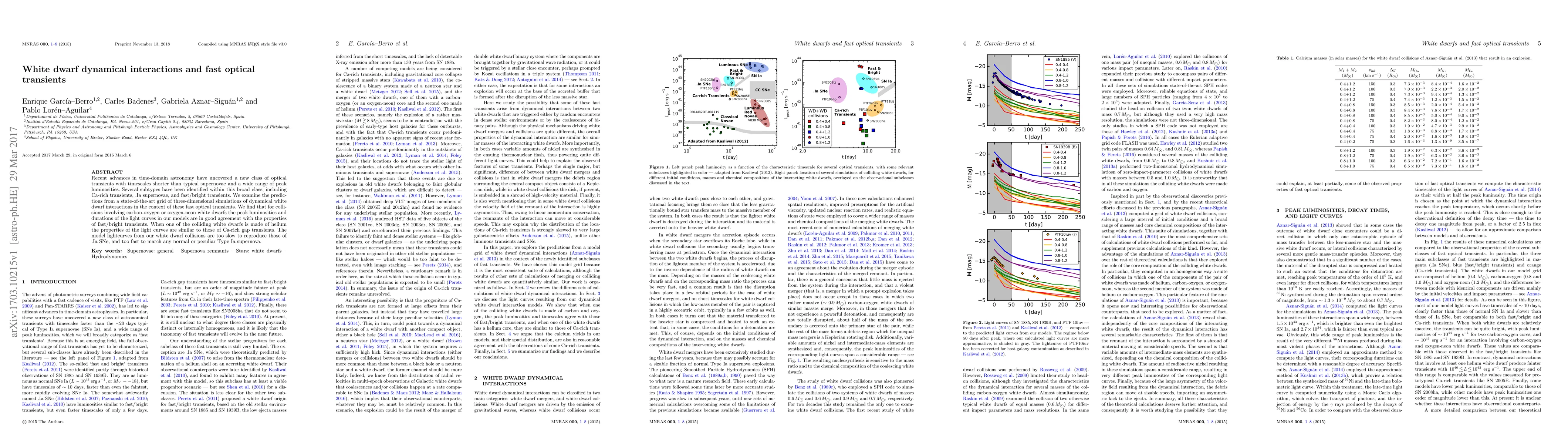 This paper investigates the link between dynamical interactions of white dwarfs and fast optical transients, finding that models of carbon-oxygen or oxygen-neon white dwarf collisions match the characteristics of fast/bright transients, while helium-white dwarf collisions resemble Ca-rich gap transients. The study concludes that these models do not match the properties of Type Ia supernovae.