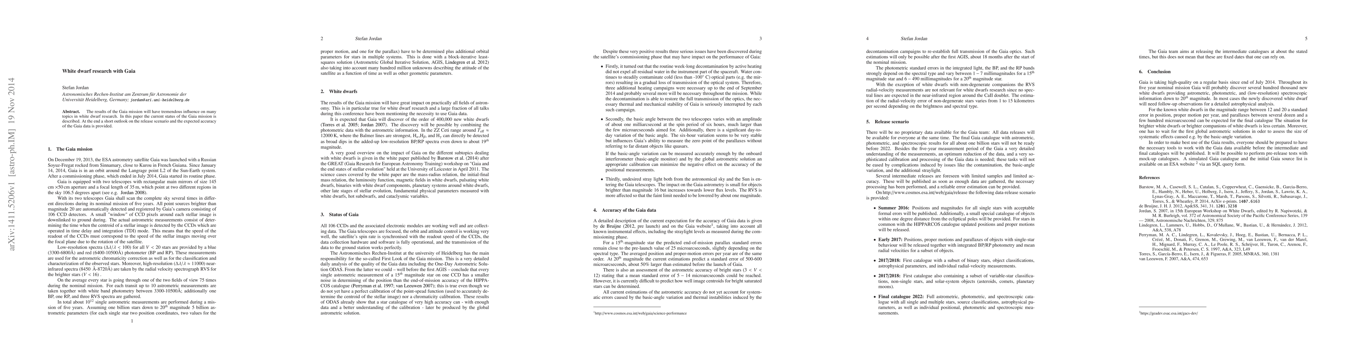 This paper reviews the current status of the Gaia mission and its anticipated impact on white dwarf research, concluding with an outlook on data release and expected accuracy.