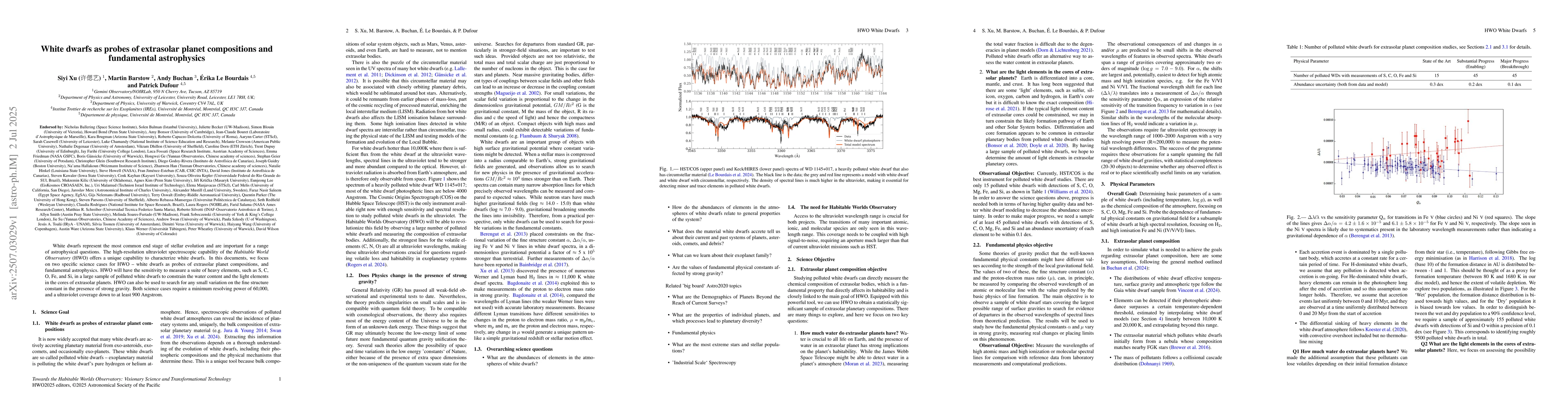 White dwarfs represent the most common end stage of stellar evolution and are important for a range of astrophysical questions. The high-resolution ultraviolet spectroscopic capability of the Habitable World Observatory (HWO) offers a unique capability to characterize white dwarfs. In this documents, we focus on two specific science cases for HWO -- white dwarfs as probes of extrasolar planet compositions, and fundamental astrophysics. HWO will have the sensitivity to measure a suite of heavy elements, such as S, C, O, Fe, and Si, in a large sample of polluted white dwarfs to constrain the water content and the light elements in the cores of extrasolar planets. HWO can also be used to search for any small variation on the fine structure constant in the presence of strong gravity. Both science cases require a minimum resolving power of 60,000, and a ultraviolet coverage down to at least 900 Angstrom.