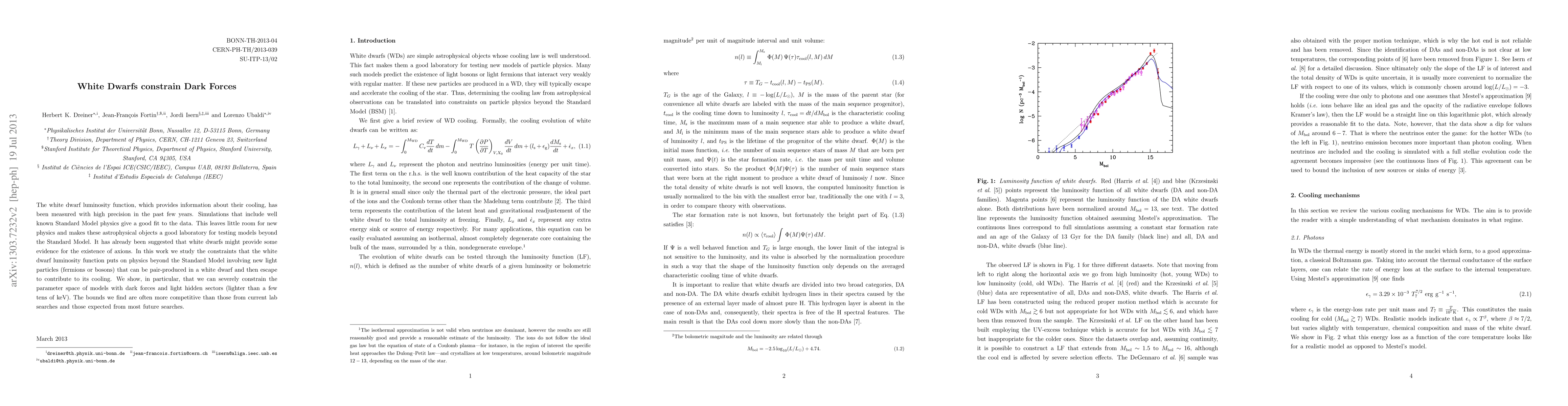 This paper investigates how the precise measurements of white dwarf luminosity functions can constrain physics beyond the Standard Model, particularly focusing on new light particles. The study finds that white dwarfs provide strong constraints on dark forces and light hidden sectors, often outperforming current and future laboratory searches.