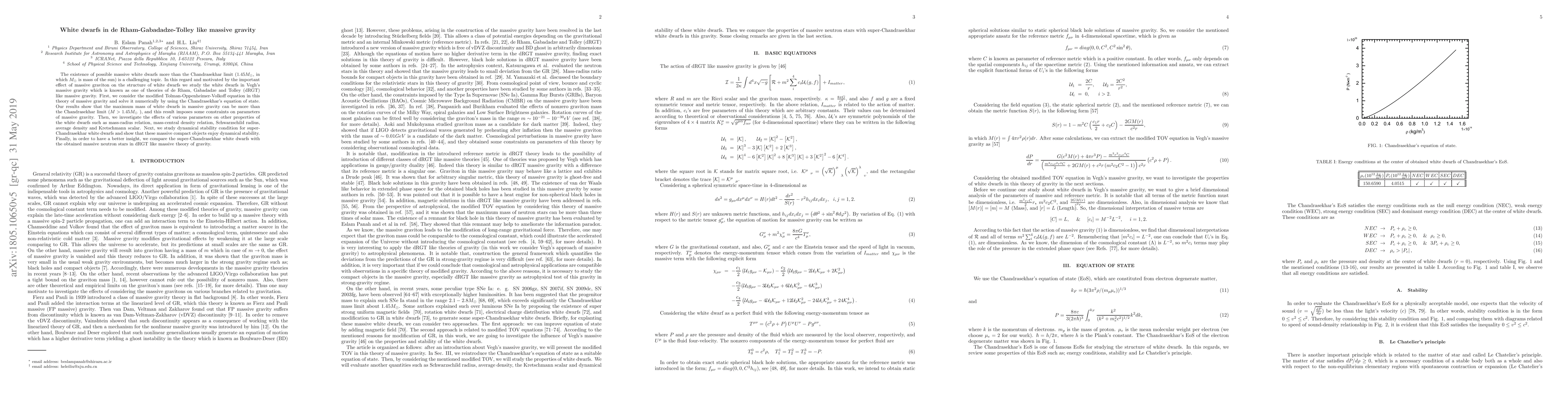 This paper explores the existence of white dwarfs exceeding the Chandrasekhar limit in the context of dRGT-like massive gravity, solving the modified Tolman-Oppenheimer-Volkoff equation and finding that their maximum mass can surpass $1.45M_{\odot}$. It also examines the dynamical stability of these super-Chandrasekhar white dwarfs and compares their properties with massive neutron stars in the same gravity theory.