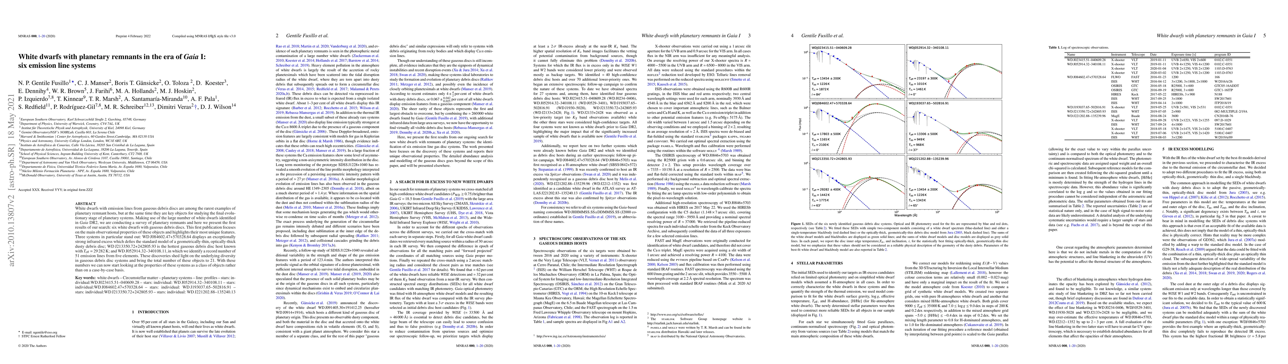 White dwarfs with emission lines from gaseous debris discs are among the rarest examples of planetary remnant hosts, but at the same time they are key objects for studying the final evolutionary stage of planetary systems. Making use of the large number of white dwarfs identified in Gaia DR2, we are conducting a survey of planetary remnants and here we present the first results of our search: six white dwarfs with gaseous debris discs. This first publication focuses on the main observational properties of these objects and highlights their most unique features. Three systems in particular stand out: WDJ084602.47+570328.64 displays an exceptionally strong infrared excess which defies the standard model of a geometrically-thin, optically-thick dusty debris disc; WDJ213350.72+242805.93 is the hottest gaseous debris disc host known with Teff=29282 K; and WDJ052914.32-340108.11, in which we identify a record number of 51 emission lines from five elements. These discoveries shed light on the underlying diversity in gaseous debris disc systems and bring the total number of these objects to 21. With these numbers we can now start looking at the properties of these systems as a class of objects rather than on a case-by-case basis.