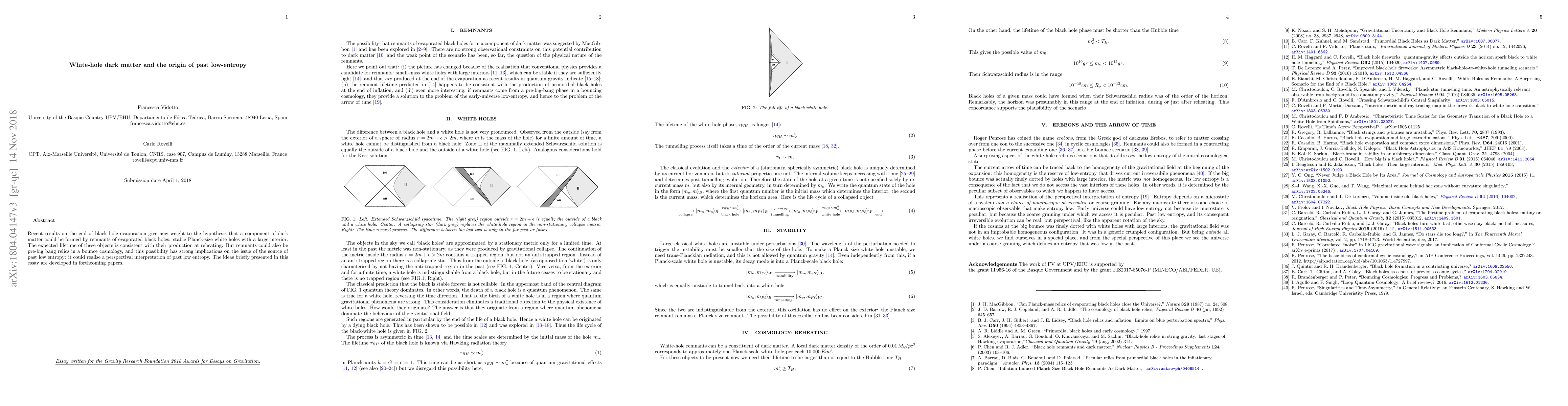 Recent results on the end of black hole evaporation give new weight to the hypothesis that a component of dark matter could be formed by remnants of evaporated black holes: stable Planck-size white holes with a large interior. The expected lifetime of these objects is consistent with their production at reheating. But remnants could also be pre-big bang relics in a bounce cosmology, and this possibility has strong implications on the issue of the source of past low entropy: it could realise a perspectival interpretation of past low entropy. The ideas briefly presented in this essay are developed in forthcoming papers.