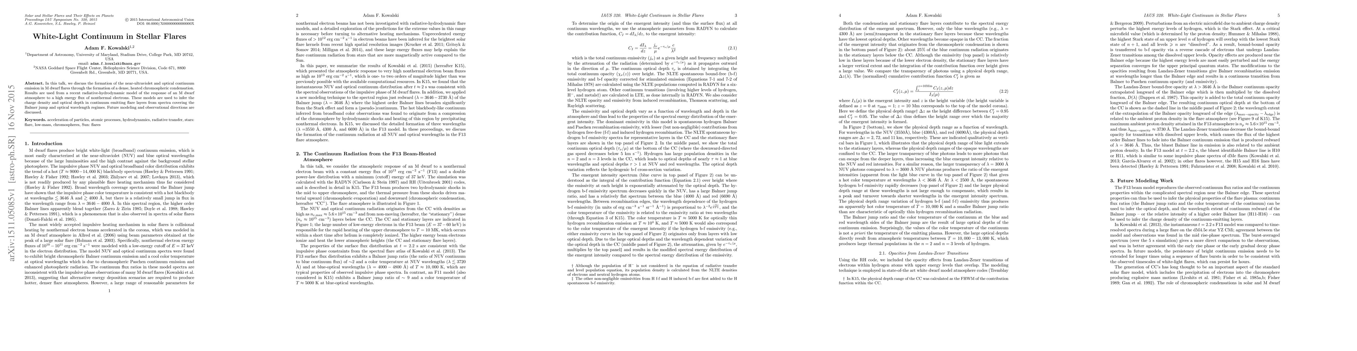 In this talk, we discuss the formation of the near-ultraviolet and optical continuum emission in M dwarf flares through the formation of a dense, heated chromospheric condensation. Results are used from a recent radiative-hydrodynamic model of the response of an M dwarf atmosphere to a high energy flux of nonthermal electrons. These models are used to infer the charge density and optical depth in continuum emitting flare layers from spectra covering the Balmer jump and optical wavelength regimes. Future modeling and observational directions are discussed.