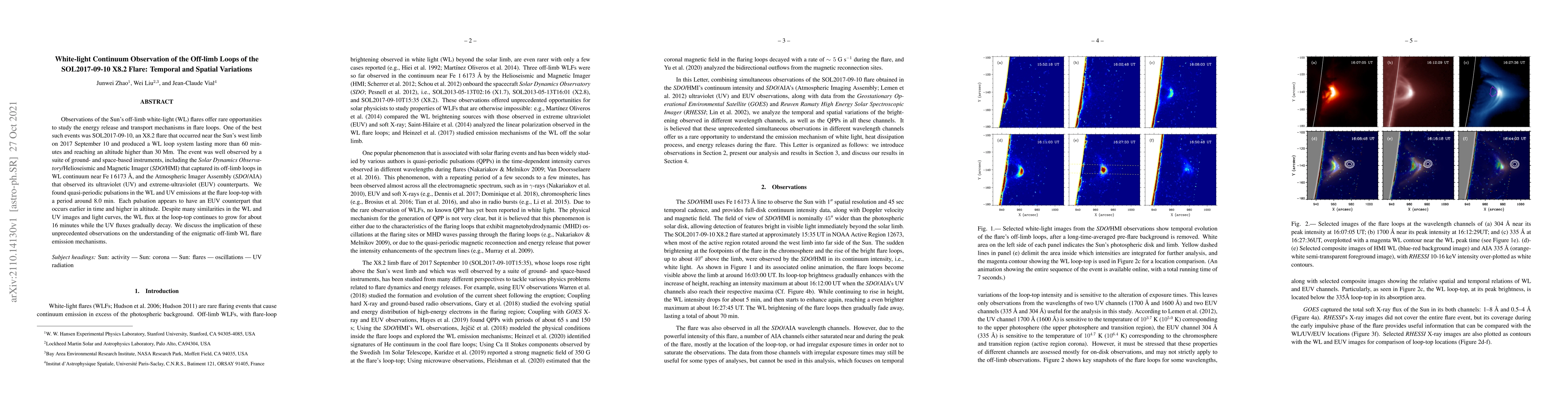 Scientists observed an X8.2 flare on the Sun's west limb and found pulsations in white-light and ultraviolet emissions at the loop-top with a period of 8 minutes, providing new insights into off-limb flare emission mechanisms.
