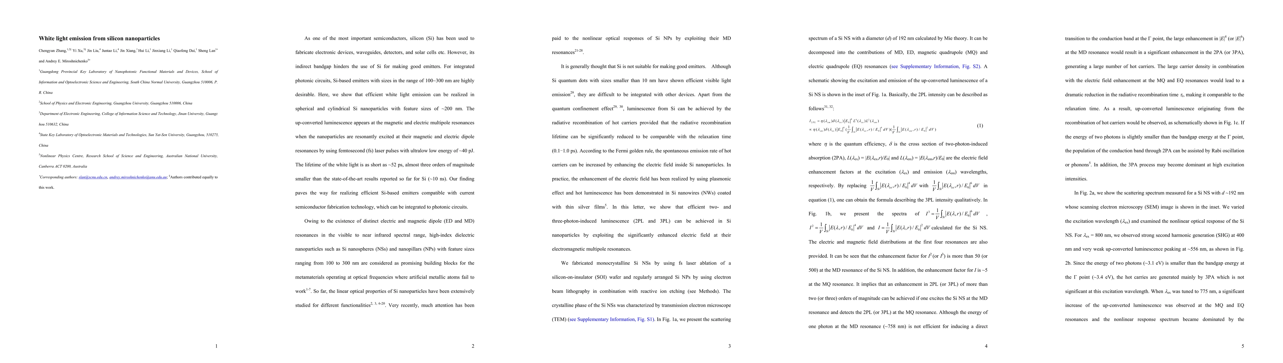 Researchers have successfully created efficient white light emitters in silicon nanoparticles with sizes of 200 nm, outperforming existing results in terms of lifetime and compatibility with semiconductor technology.