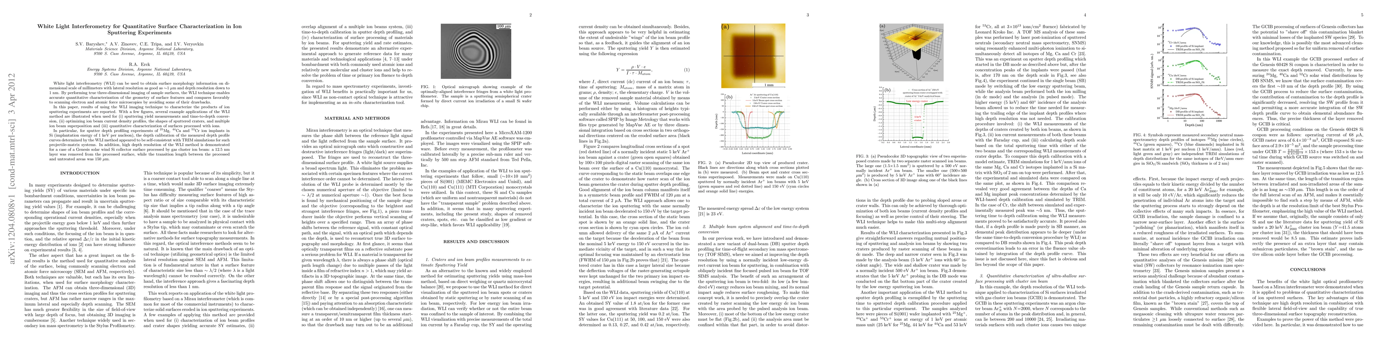 White light interferometry (WLI) can be used to obtain surface morphology information on dimensional scale of millimeters with lateral resolution as good as ~1 {\mu}m and depth resolution down to 1 nm. By performing true three-dimensional imaging of sample surfaces, the WLI technique enables accurate quantitative characterization of the geometry of surface features and compares favorably to scanning electron and atomic force microscopies by avoiding some of their drawbacks. In this paper, results of using the WLI imaging technique to characterize the products of ion sputtering experiments are reported. With a few figures, several example applications of the WLI method are illustrated when used for (i) sputtering yield measurements and time-to-depth conversion, (ii) optimizing ion beam current density profiles, the shapes of sputtered craters, and multiple ion beam superposition and (iii) quantitative characterization of surfaces processed with ions. In particular, for sputter depth profiling experiments of 25Mg, 44Ca and 53Cr ion implants in Si (implantation energy of 1 keV per nucleon), the depth calibration of the measured depth profile curves determined by the WLI method appeared to be self-consistent with TRIM simulations for such projectile-matrix systems. In addition, high depth resolution of the WLI method is demonstrated for a case of a Genesis solar wind Si collector surface processed by gas cluster ion beam: a 12.5 nm layer was removed from the processed surface, while the transition length between the processed and untreated areas was 150 {\mu}m.
