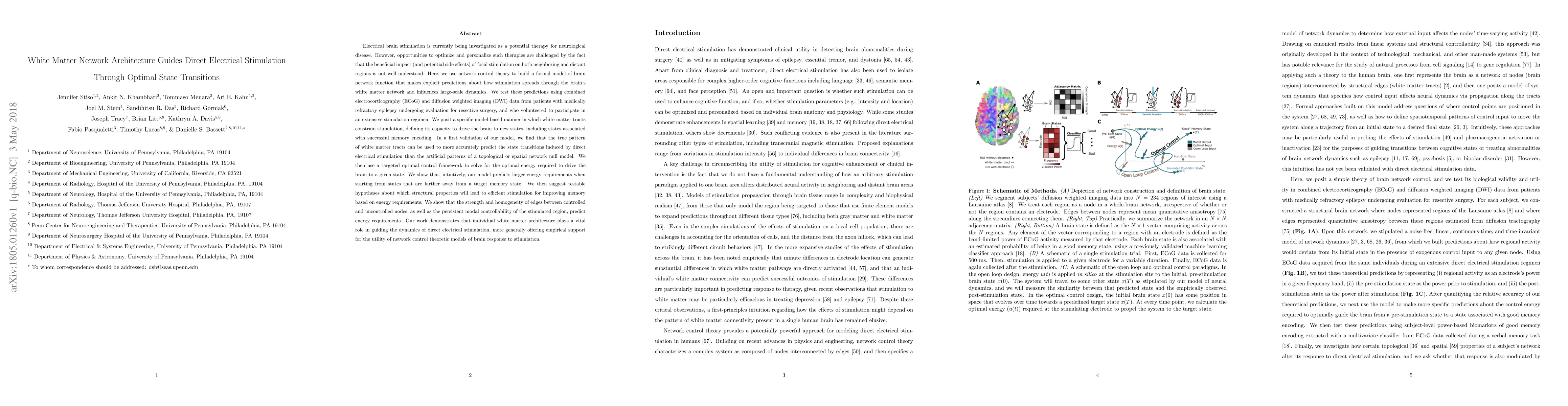 This research uses network control theory to model how electrical brain stimulation spreads through the brain's white matter network, finding that individual white matter architecture significantly influences the optimal state transitions induced by stimulation. The study validates the model using ECoG and DWI data, demonstrating its potential to optimize stimulation therapies for neurological diseases.