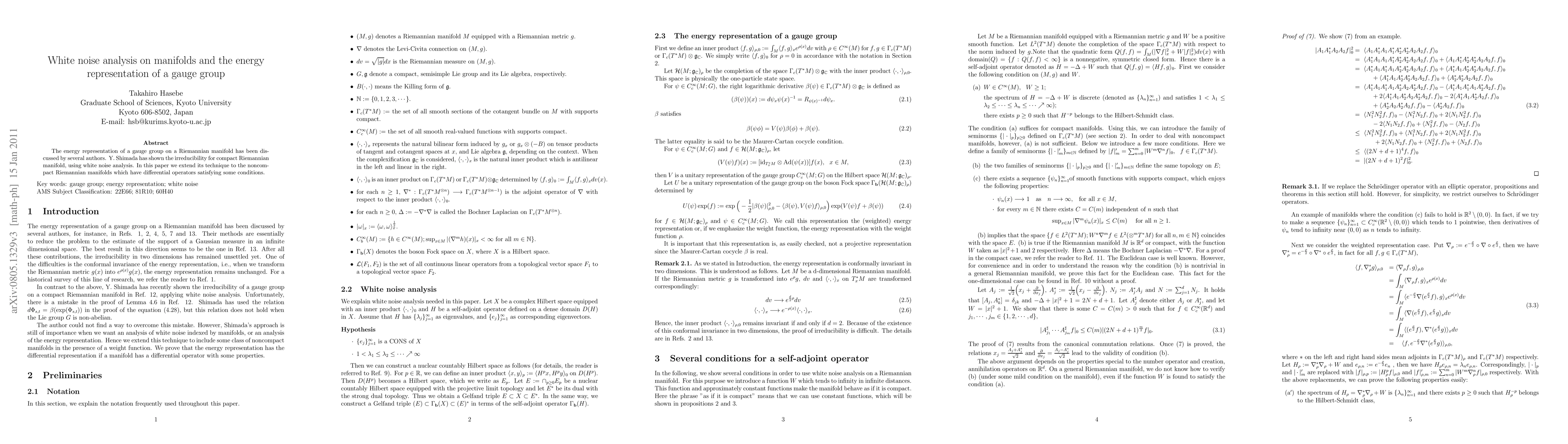 This paper extends Shimada's white noise analysis technique to noncompact Riemannian manifolds, showing the irreducibility of gauge group representations under certain conditions.