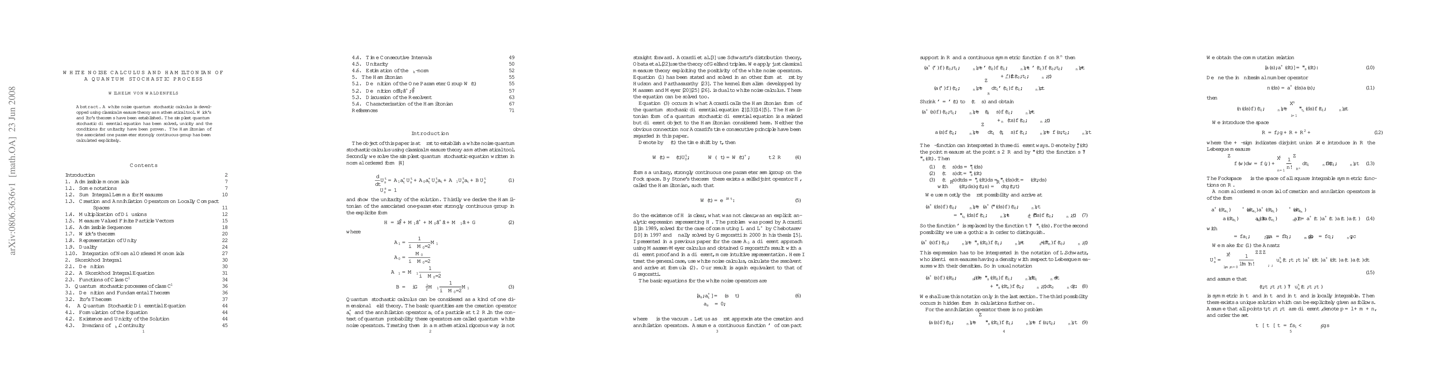 This paper develops a white noise quantum stochastic calculus grounded in classical measure theory, establishing Wick's and Ito's theorems. It solves the simplest quantum stochastic differential equation, proving its uniqueness and unitarity conditions, and explicitly calculates the Hamiltonian of the associated one-parameter strongly continuous group.