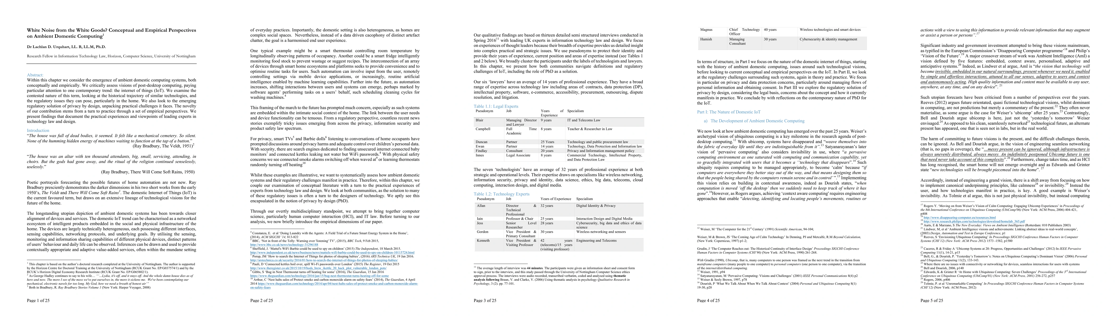 Within this chapter we consider the emergence of ambient domestic computing systems, both conceptually and empirically. We critically assess visions of post-desktop computing, paying particular attention to one contemporary trend: the internet of things (IoT). We examine the contested nature of this term, looking at the historical trajectory of similar technologies, and the regulatory issues they can pose, particularly in the home. We also look to the emerging regulatory solution of privacy by design, unpacking practical challenges it faces. The novelty of our contribution stems from a turn to practice through a set of empirical perspectives. We present findings that document the practical experiences and viewpoints of leading experts in technology law and design.