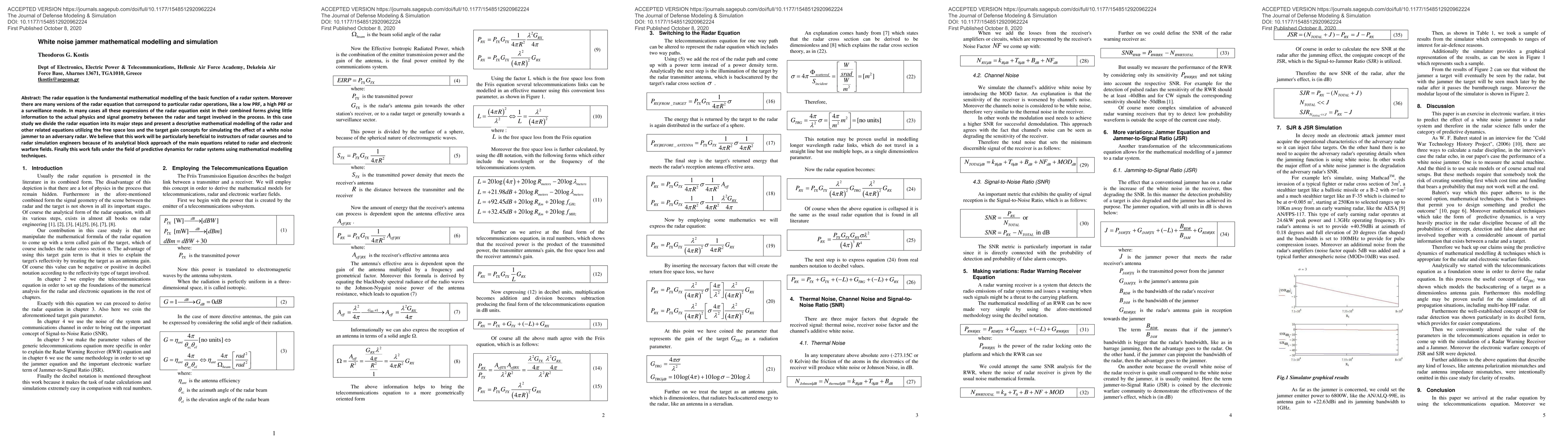 The radar equation is the fundamental mathematical modelling of the basic function of a radar system. Moreover there are many versions of the radar equation that correspond to particular radar operations, like a low PRF, a high PRF or a surveillance mode. In many cases all these expressions of the radar equation exist in their combined forms giving little information to the actual physics and signal geometry between the radar and target involved in the process. In this case study we divide the radar equation into its major steps and present a descriptive mathematical modelling of the radar and other related equations utilizing the free space loss and the target gain concepts for simulating the effect of a white noise jammer to an adversary radar. We believe that this work will be particularly beneficial to instructors of radar courses and to radar simulation engineers because of its analytical block approach of the main equations related to radar and electronic warfare fields. Finally this work falls under the field of predictive dynamics for radar systems using mathematical modelling techniques.