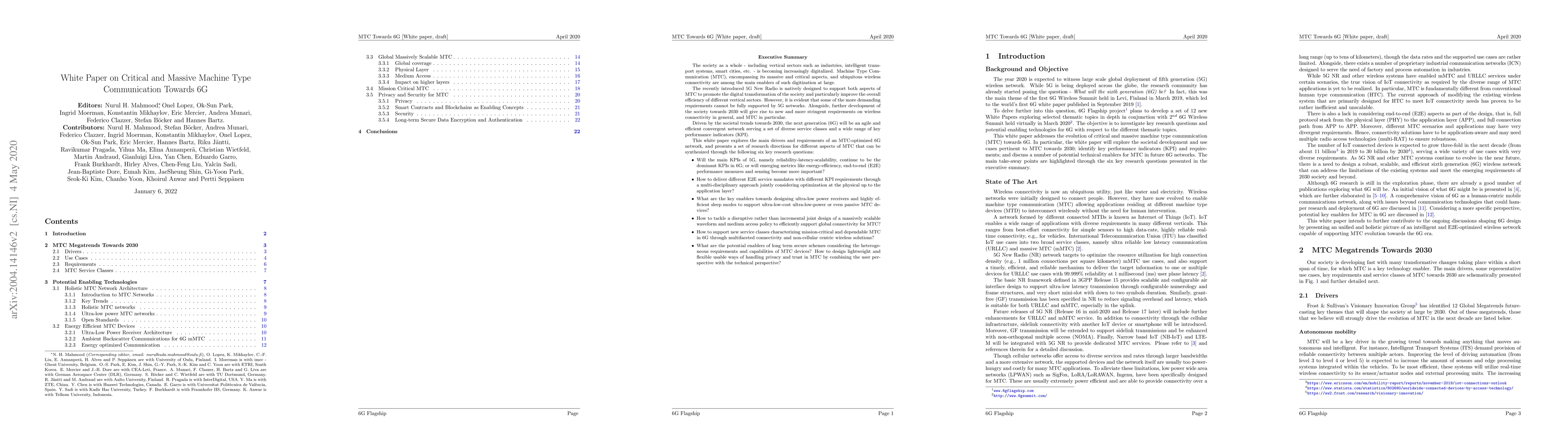 This white paper investigates the requirements and drivers for an MTC-optimized 6G network, addressing six key research questions to ensure the next generation of wireless connectivity meets future demands. It explores whether 5G's KPIs will persist in 6G or if new metrics will emerge, and discusses the design of efficient, scalable, and secure communication systems for diverse service classes.
