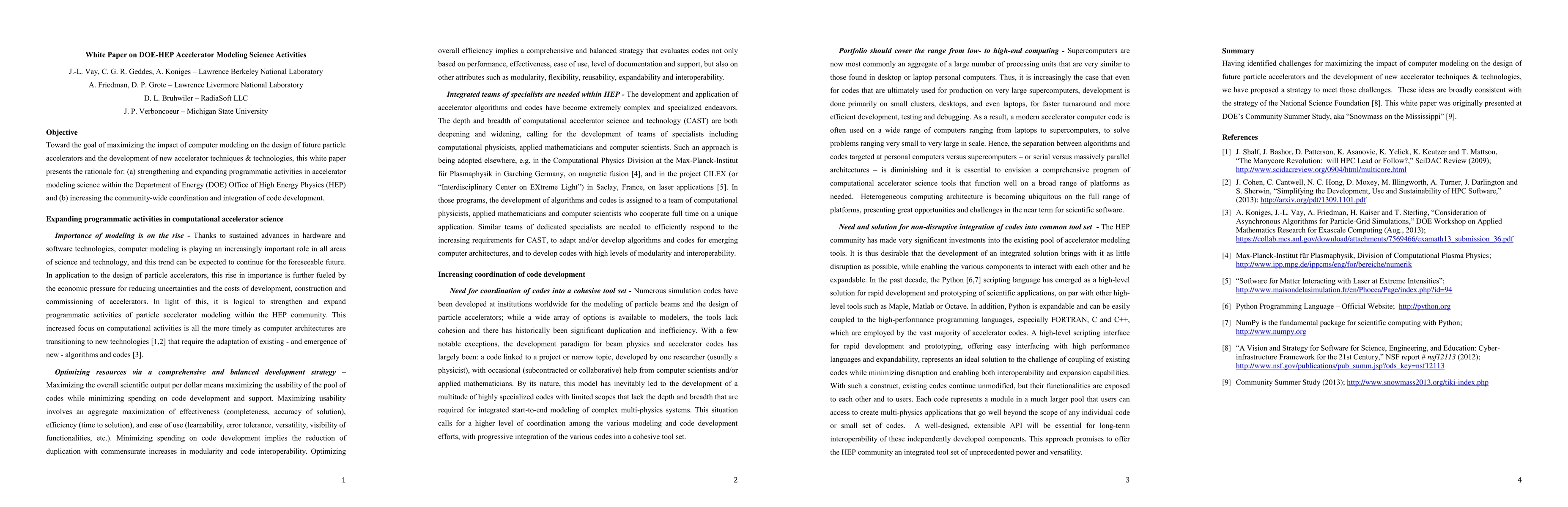 Toward the goal of maximizing the impact of computer modeling on the design of future particle accelerators and the development of new accelerator techniques & technologies, this white paper presents the rationale for: (a) strengthening and expanding programmatic activities in accelerator modeling science within the Department of Energy (DOE) Office of High Energy Physics (HEP) and (b) increasing the community-wide coordination and integration of code development.