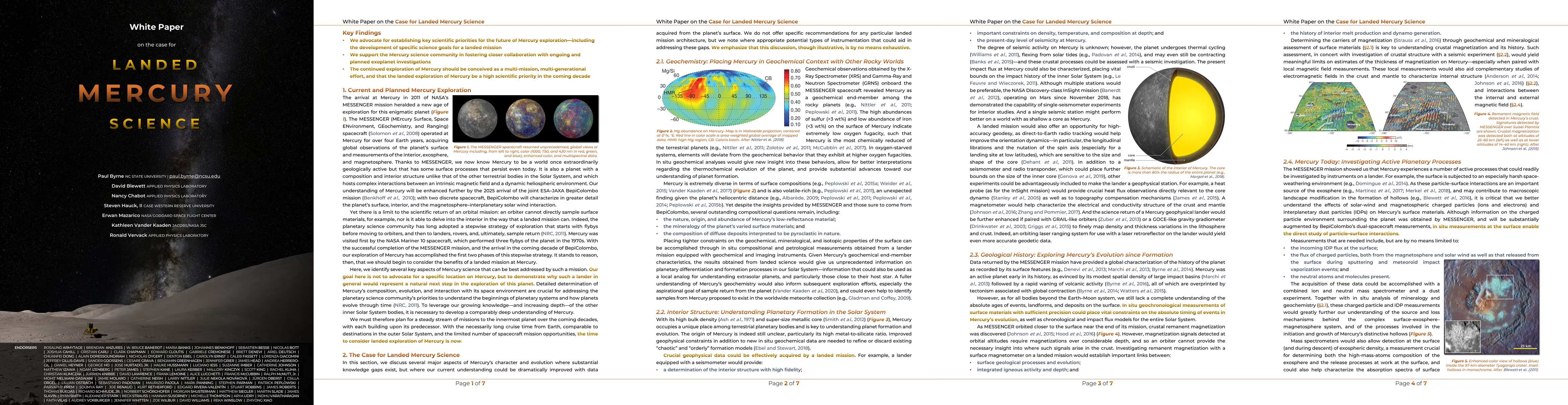We advocate for establishing key scientific priorities for the future of Mercury exploration, including the development of specific science goals for a landed mission. We support the Mercury science community in fostering closer collaboration with ongoing and planned exoplanet investigations. The continued exploration of Mercury should be conceived as a multi-mission, multi-generational effort, and that the landed exploration of Mercury be a high scientific priority in the coming decade.