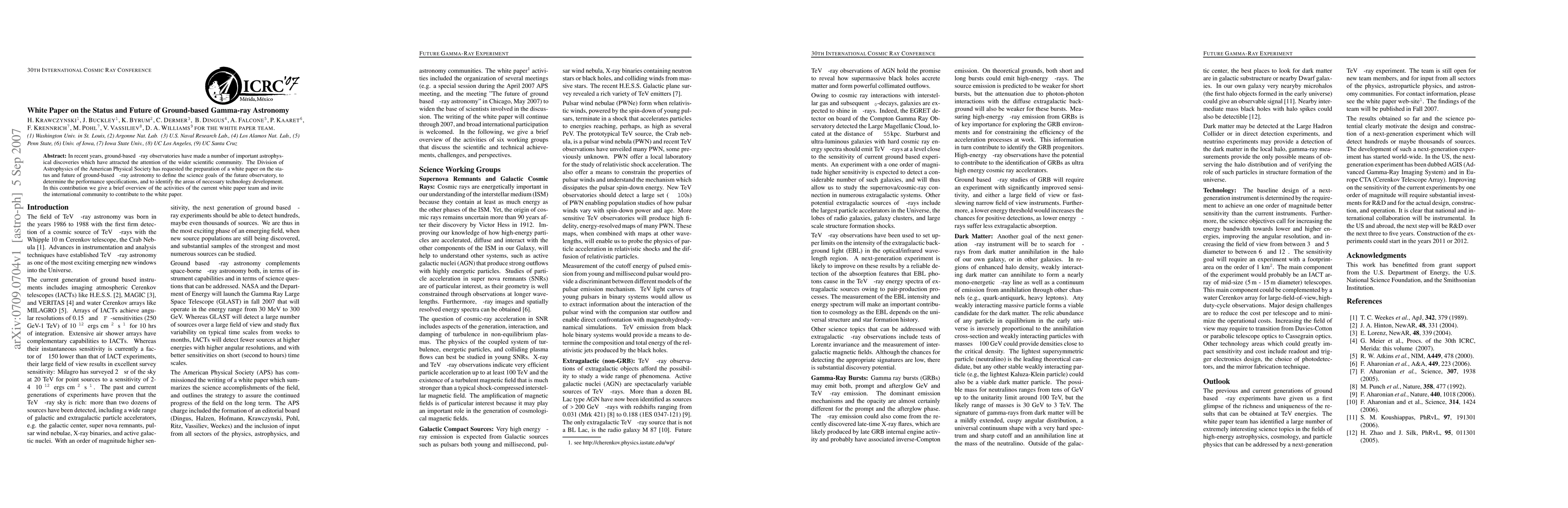 In recent years, ground-based gamma-ray observatories have made a number of important astrophysical discoveries which have attracted the attention of the wider scientific community. The Division of Astrophysics of the American Physical Society has requested the preparation of a white paper on the status and future of ground-based gamma-ray astronomy to define the science goals of the future observatory, to determine the performance specifications, and to identify the areas of necessary technology development. In this contribution we give a brief overview of the activities of the current white paper team and invite the international community to contribute to the white paper.