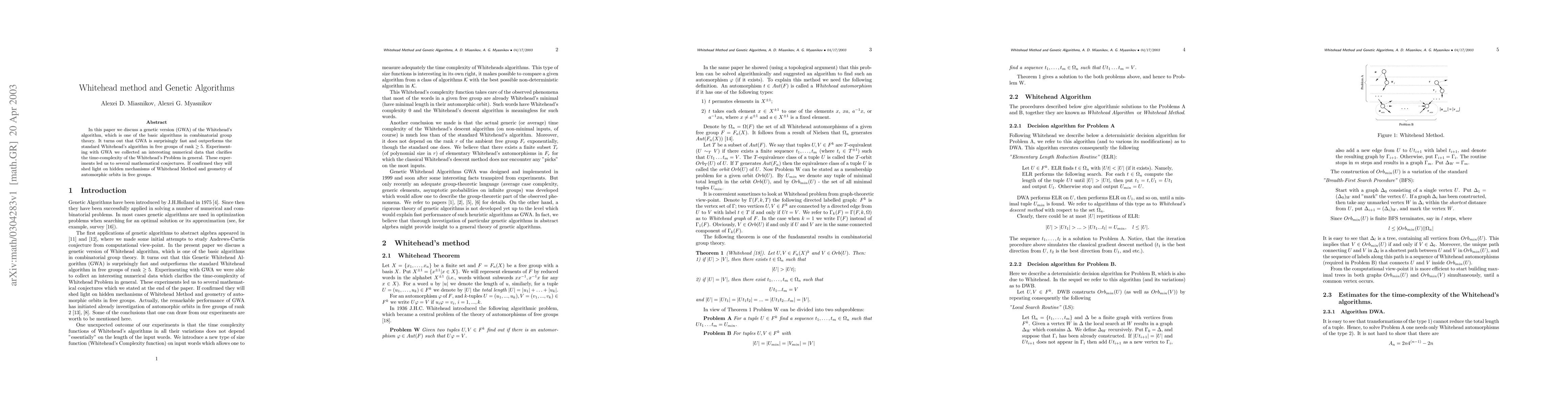 This paper introduces a genetic version of Whitehead's algorithm (GWA) that significantly outperforms the standard algorithm in free groups of rank >= 5. Experimental results provide insights into the time-complexity of the Whitehead Problem and lead to new mathematical conjectures about the method's underlying mechanisms.