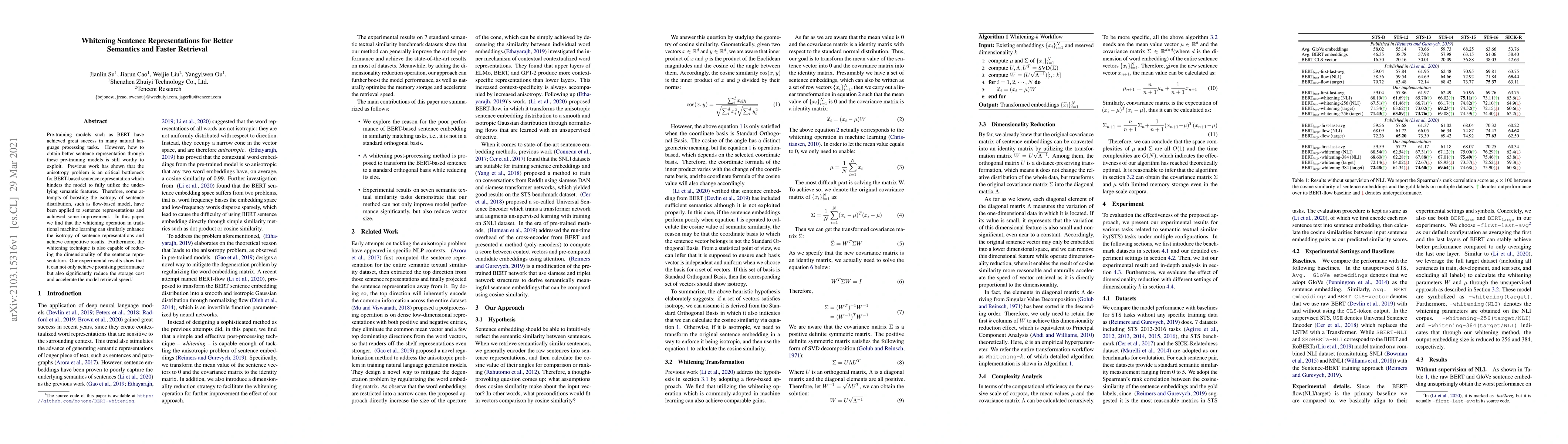 This paper explores the use of whitening operations to enhance the isotropy of sentence representations derived from pre-trained models like BERT, addressing the anisotropy problem. The technique not only improves semantic performance but also reduces dimensionality, storage costs, and retrieval speed.