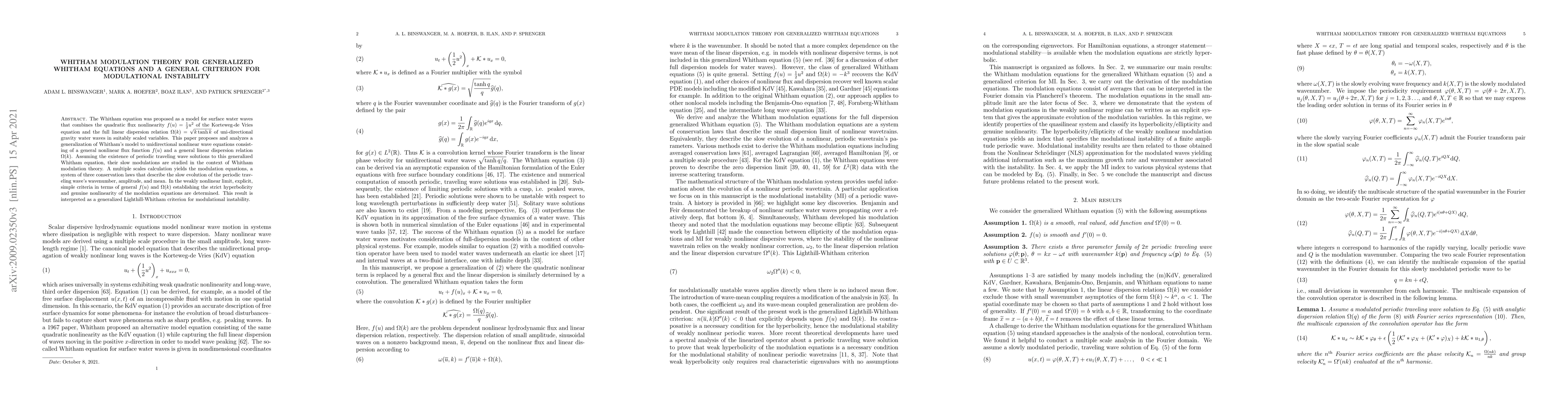 This paper generalizes Whitham's model for surface water waves, introducing a framework for modulation theory applicable to a wide range of nonlinear wave equations. The study provides a criterion for modulational instability based on the properties of the nonlinear flux function and dispersion relation.