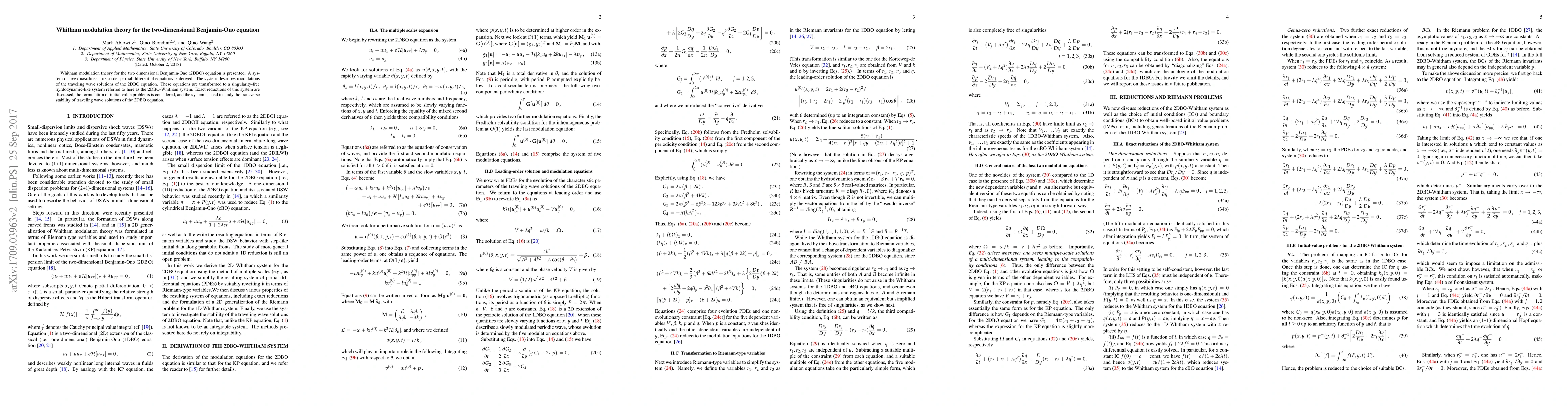Researchers developed a system of equations to study modulations of traveling wave solutions in the 2D Benjamin-Ono equation, providing insights into transverse stability.