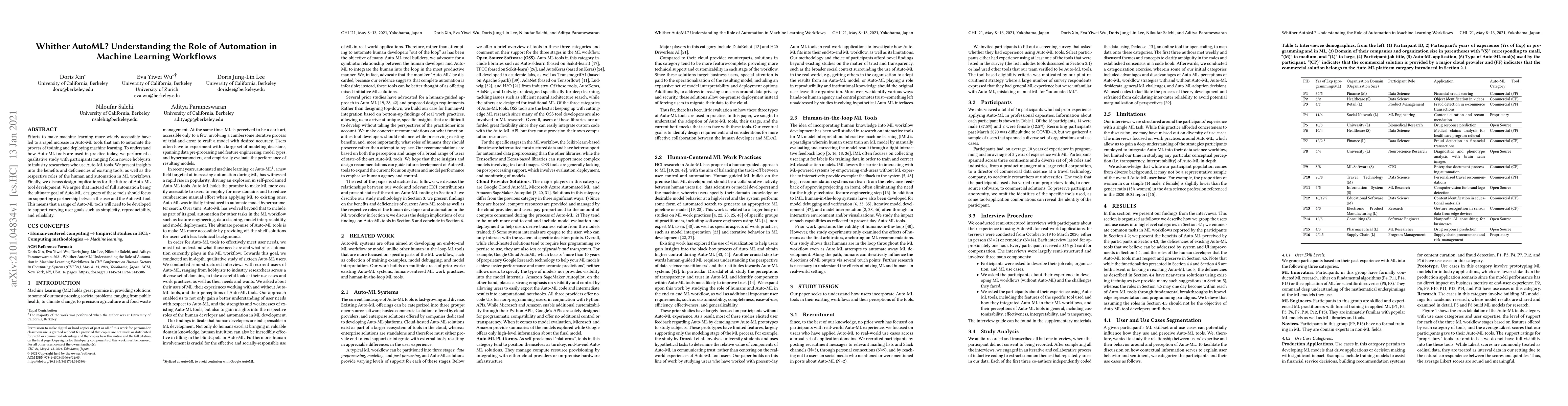 Efforts to make machine learning more widely accessible have led to a rapid increase in Auto-ML tools that aim to automate the process of training and deploying machine learning. To understand how Auto-ML tools are used in practice today, we performed a qualitative study with participants ranging from novice hobbyists to industry researchers who use Auto-ML tools. We present insights into the benefits and deficiencies of existing tools, as well as the respective roles of the human and automation in ML workflows. Finally, we discuss design implications for the future of Auto-ML tool development. We argue that instead of full automation being the ultimate goal of Auto-ML, designers of these tools should focus on supporting a partnership between the user and the Auto-ML tool. This means that a range of Auto-ML tools will need to be developed to support varying user goals such as simplicity, reproducibility, and reliability.