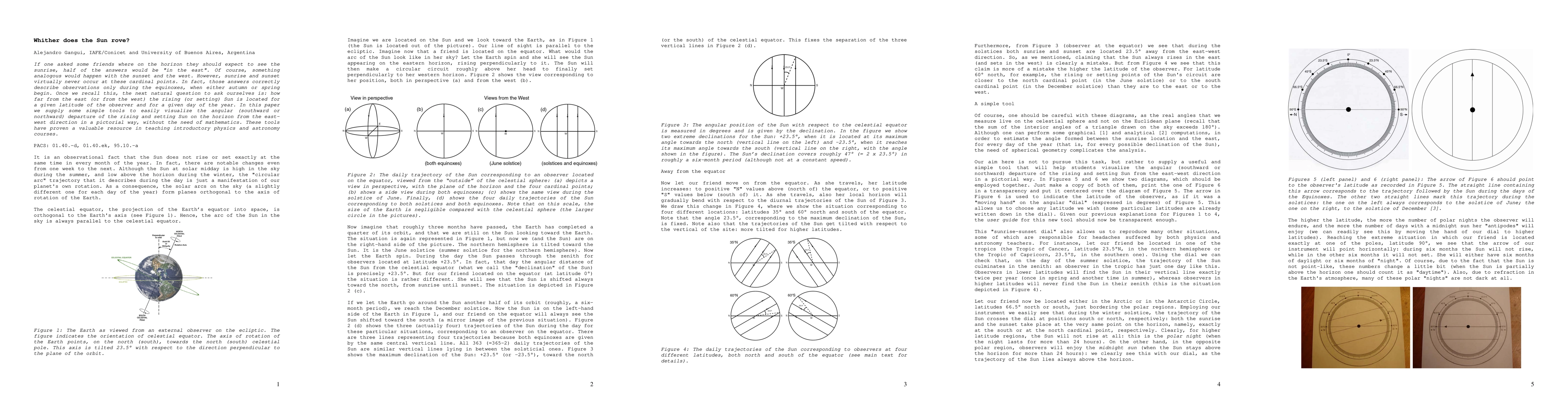 If one asked some friends where on the horizon they should expect to see the sunrise, half of the answers would be "in the east". Of course, something analogous would happen with the sunset and the west. However, sunrise and sunset virtually never occur at these cardinal points. In fact, those answers correctly describe observations only during the equinoxes, when either autumn or spring begin. Once we recall this, the next natural question to ask ourselves is: how far from the east (or from the west) the rising (or setting) Sun is located for a given latitude of the observer and for a given day of the year. In this paper we supply some simple tools to easily visualize the angular (southward or northward) departure of the rising and setting Sun on the horizon from the east-west direction in a pictorial way, without the need of mathematics. These tools have proven a valuable resource in teaching introductory physics and astronomy courses.
