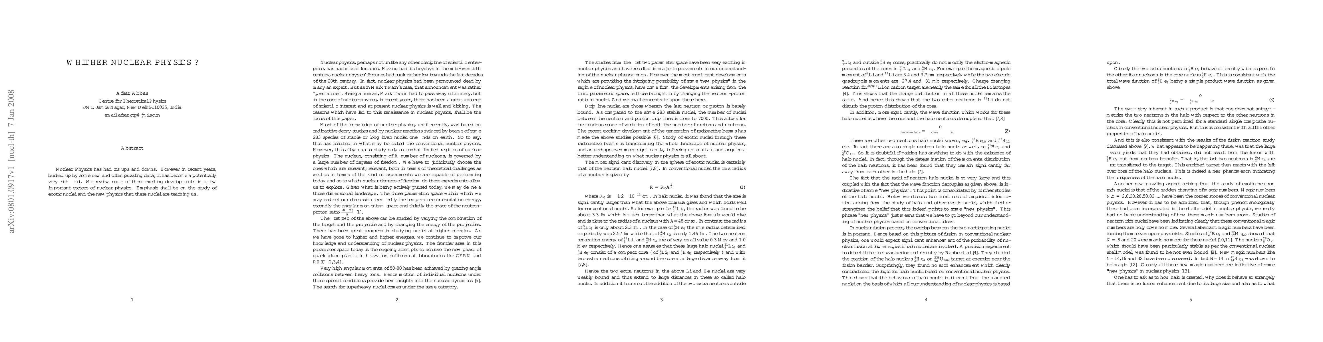 Nuclear Physics has had its ups and downs. However in recent years, bucked up by some new and often puzzling data, it has become a potentially very rich field. We review some of these exciting developments in a few important sectors of nuclear physics. Emphasis shall be on the study of exotic nuclei and the new physics that these nuclei are teaching us.