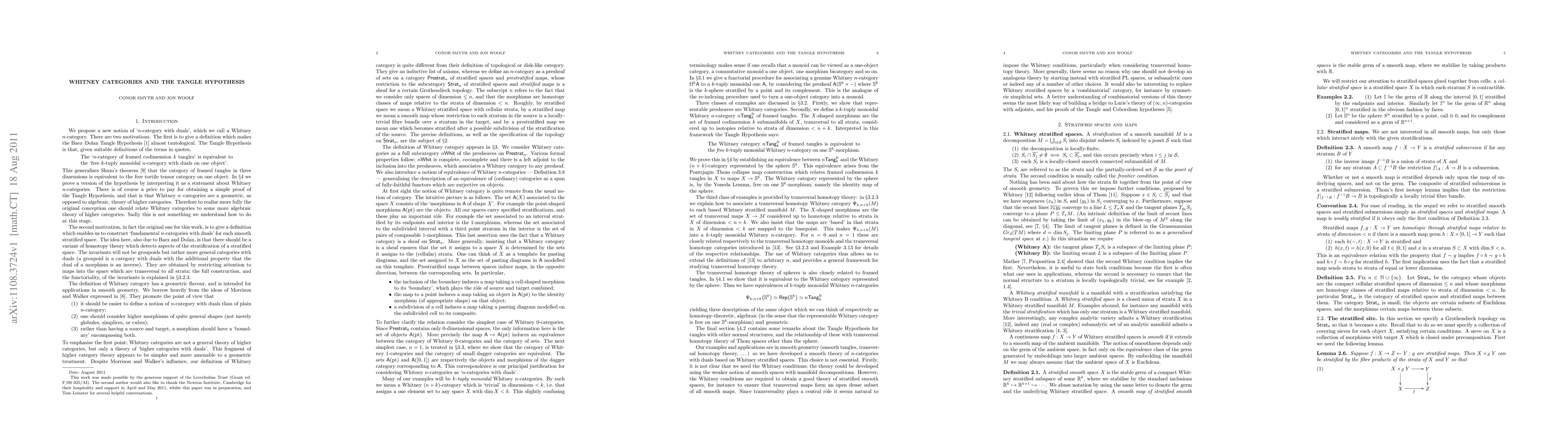 We propose a new notion of `n-category with duals', which we call a Whitney n-category. There are two motivations. The first is that Baez and Dolan's Tangle Hypothesis is (almost) tautological when interpreted as a statement about Whitney categories. The second is that we can functorially construct `fundamental Whitney n-categories' from each smooth stratified space X. These are obtained by considering the homotopy theory of smooth maps into X which are transversal to all strata. This makes concrete another idea of Baez and Dolan's which is that a suitable version of homotopy theory for stratified spaces should allow one to generalise the relationship between spaces and groupoids to one between stratified spaces and categories with duals.