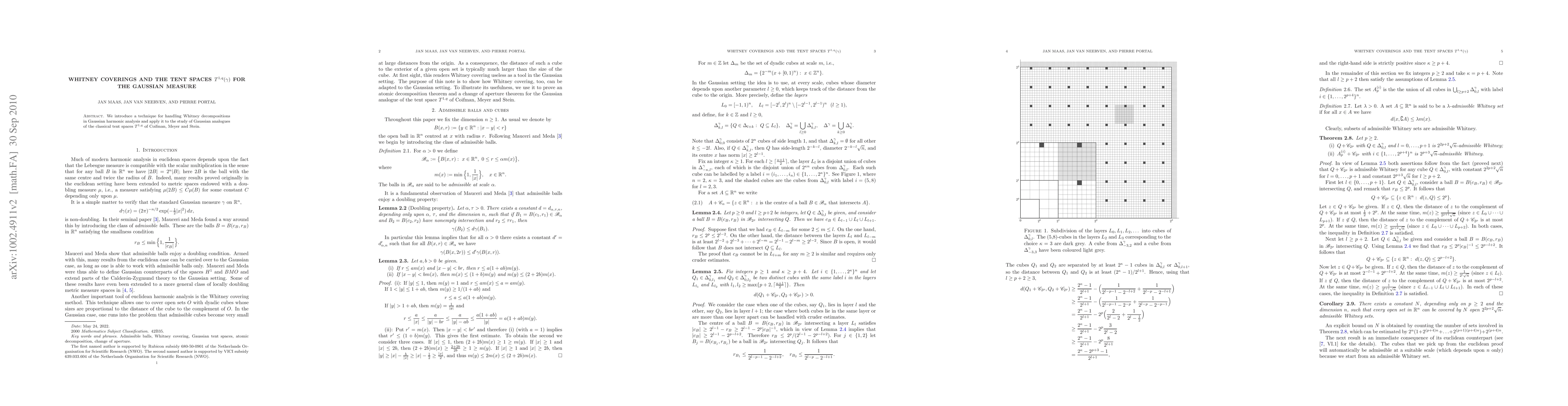 Summary: This paper presents a novel technique for managing Whitney decompositions in Gaussian harmonic analysis, which is then applied to investigate Gaussian versions of the classical tent spaces $T^{1,q}$, enhancing understanding of their properties.