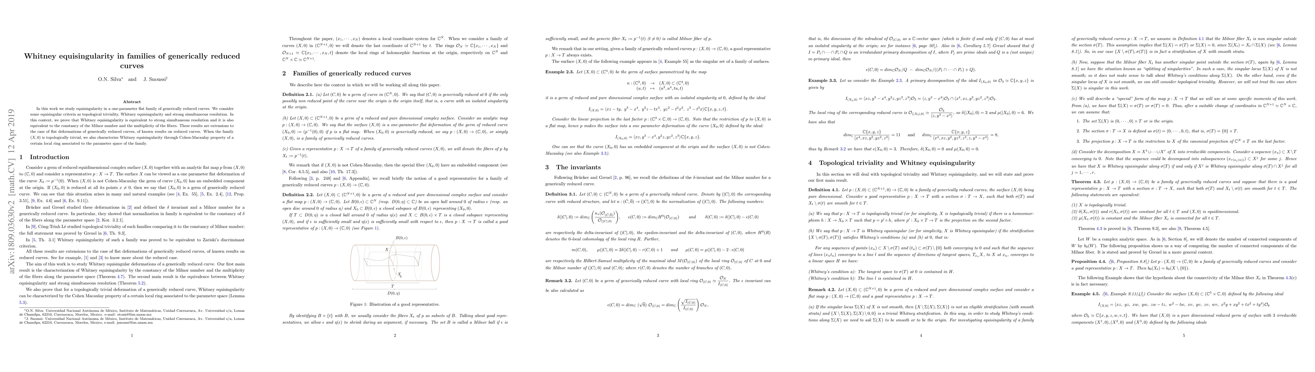 This paper investigates equisingularity in one-parameter flat families of generically reduced curves, proving that Whitney equisingularity is equivalent to strong simultaneous resolution and constancy of Milnor number and fiber multiplicity. It also characterizes Whitney equisingularity via the Cohen-Macaulay property of a local ring in topologically trivial families.