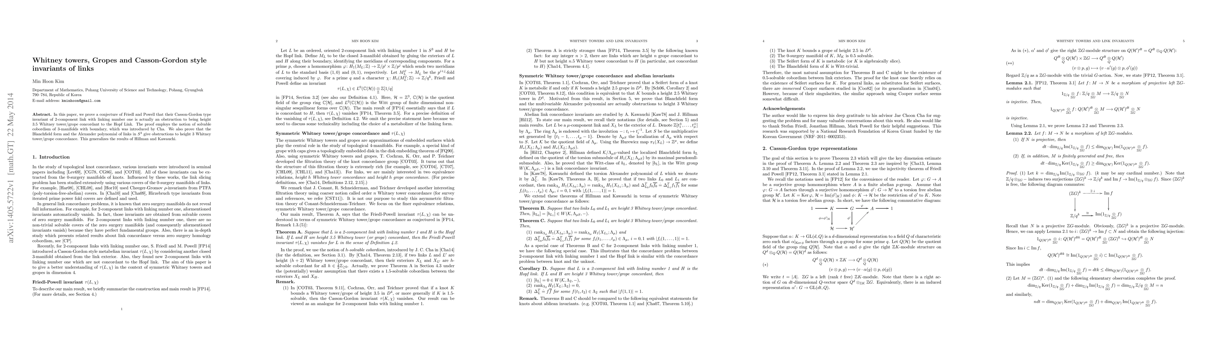 In this paper, we prove a conjecture of Friedl and Powell that their Casson-Gordon type invariant of 2-component link with linking number one is actually an obstruction to being height 3.5 Whitney tower/grope concordant to the Hopf Link. The proof employs the notion of solvable cobordism of 3-manifolds with boundary, which was introduced by Cha. We also prove that the Blanchfield form and the Alexander polynomial of links in $S^3$ give obstructions to height 3 Whitney tower/grope concordance. This generalizes the results of Hillman and Kawauchi.