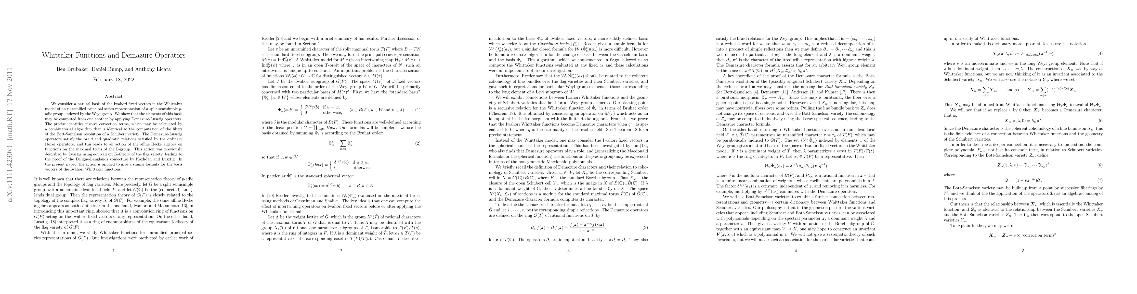This paper explores a natural basis for Iwahori fixed vectors in the Whittaker model of an unramified principal series representation, showing they can be derived via Demazure-Lusztig operators and establishing an action of the affine Hecke algebra on functions on the maximal torus, mirroring Lusztig's equivariant K-theory approach.