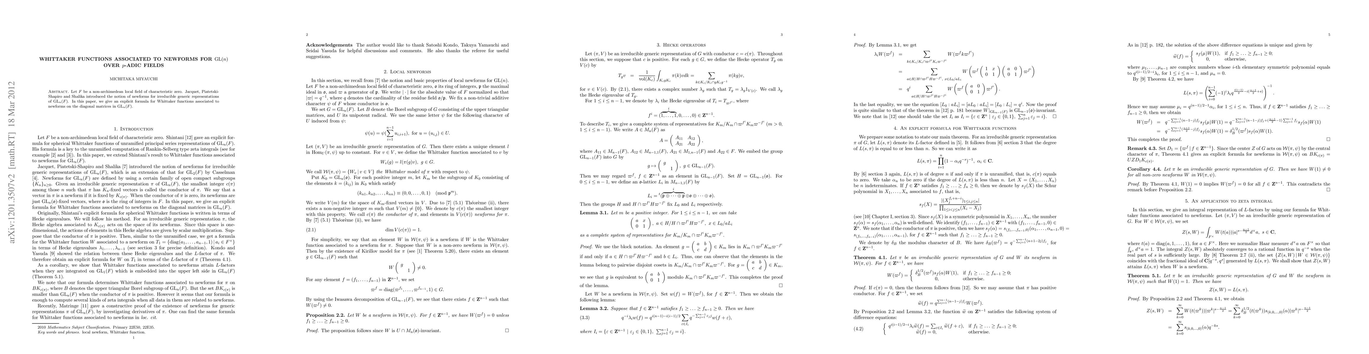 This paper provides an explicit formula for Whittaker functions linked to newforms for irreducible generic representations of the general linear group GL_n(F) over non-archimedean local fields. The focus is on newforms associated with diagonal matrices in GL_n(F).