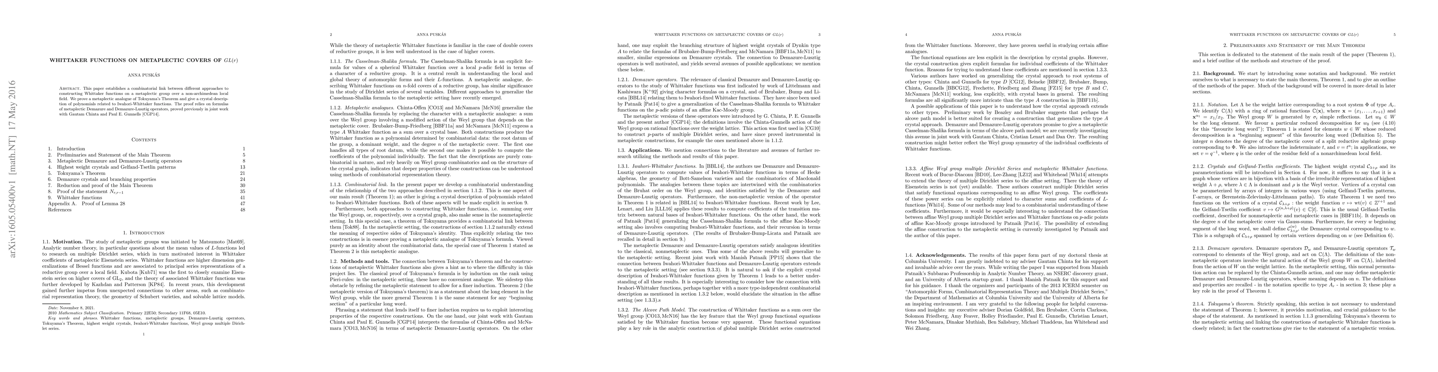 This paper connects various methods for constructing Whittaker functions on metaplectic groups over non-archimedean local fields and establishes a metaplectic analogue of Tokuyama's Theorem. It also provides a crystal description for related polynomials using metaplectic Demazure and Demazure-Lusztig operators.