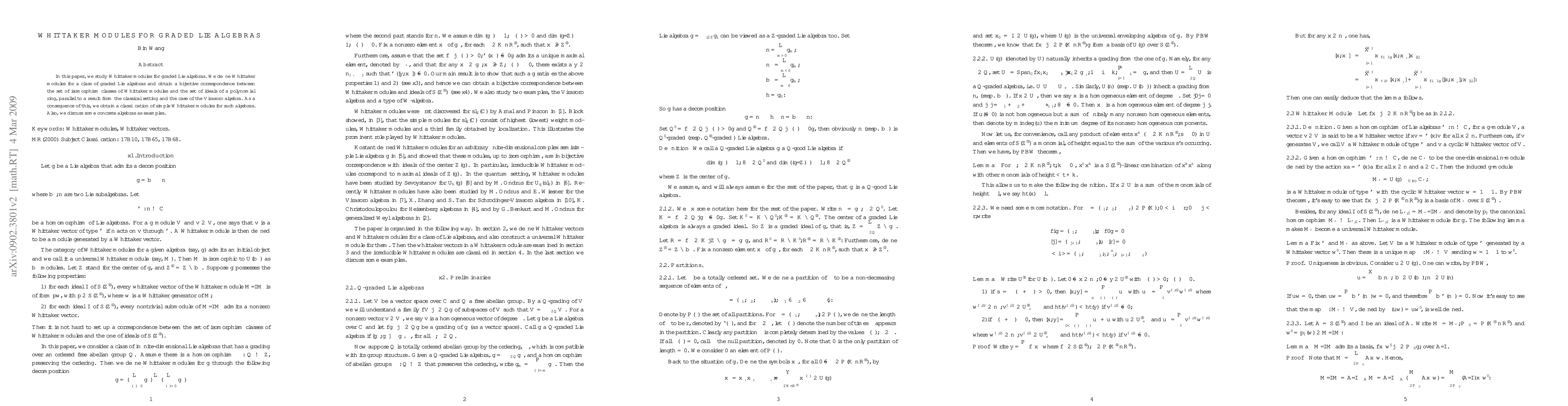 This paper explores Whittaker modules for graded Lie algebras, establishing a bijective correspondence between these modules and ideals of a polynomial ring, thus classifying simple Whittaker modules and analyzing specific examples.