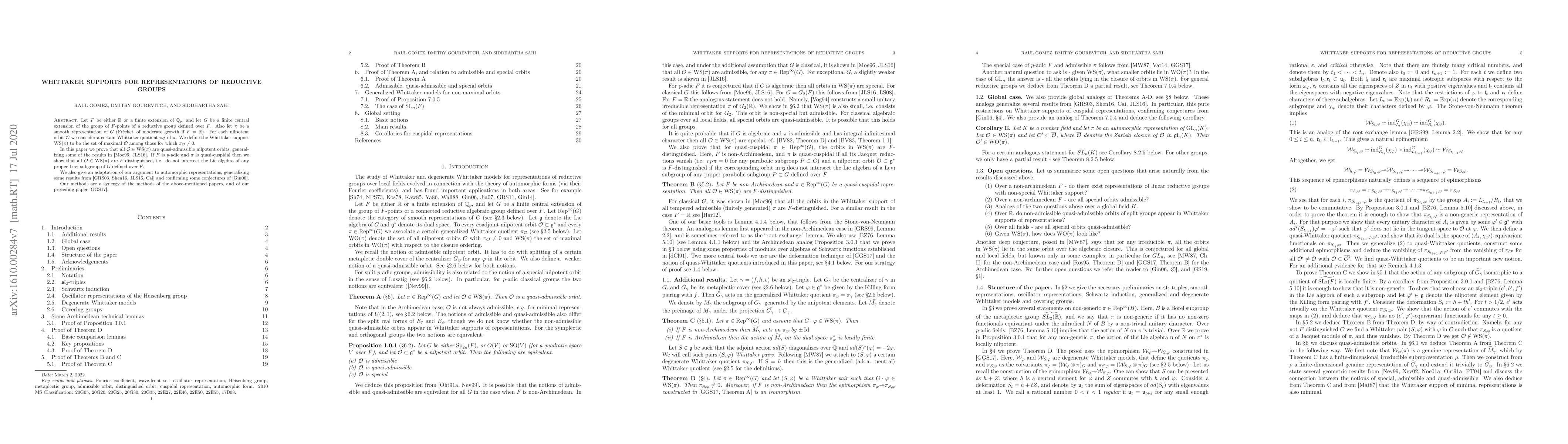 This paper proves that Whittaker supports for representations of reductive groups have a specific structure, generalizing earlier results and confirming conjectures in the field of number theory.
