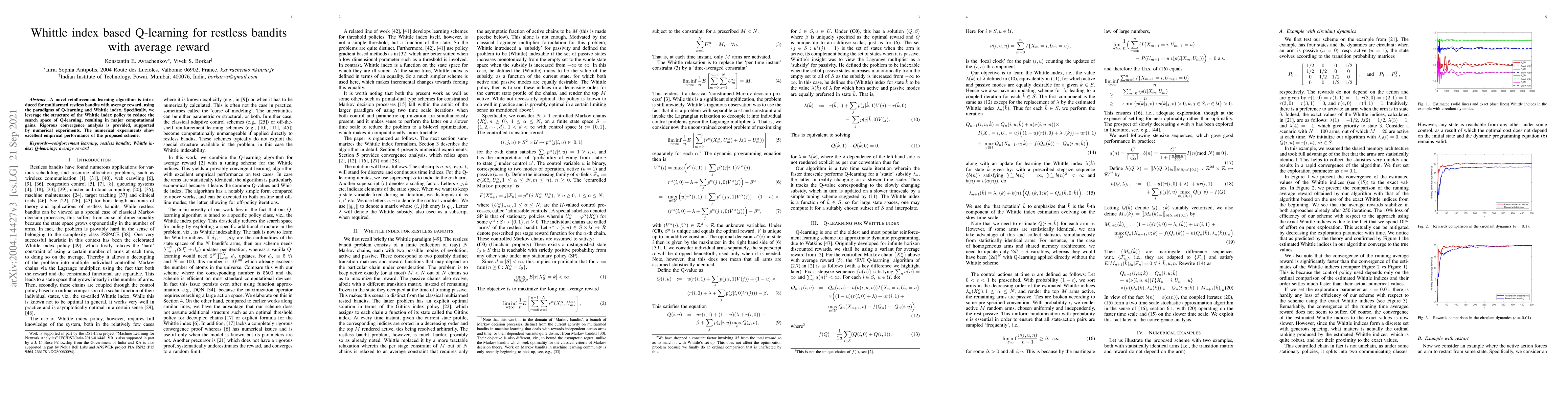 This paper introduces a novel Q-learning algorithm for restless bandits with average reward, leveraging the Whittle index to reduce the search space and achieve significant computational gains. The method is rigorously analyzed for convergence and demonstrated to perform excellently in numerical experiments.