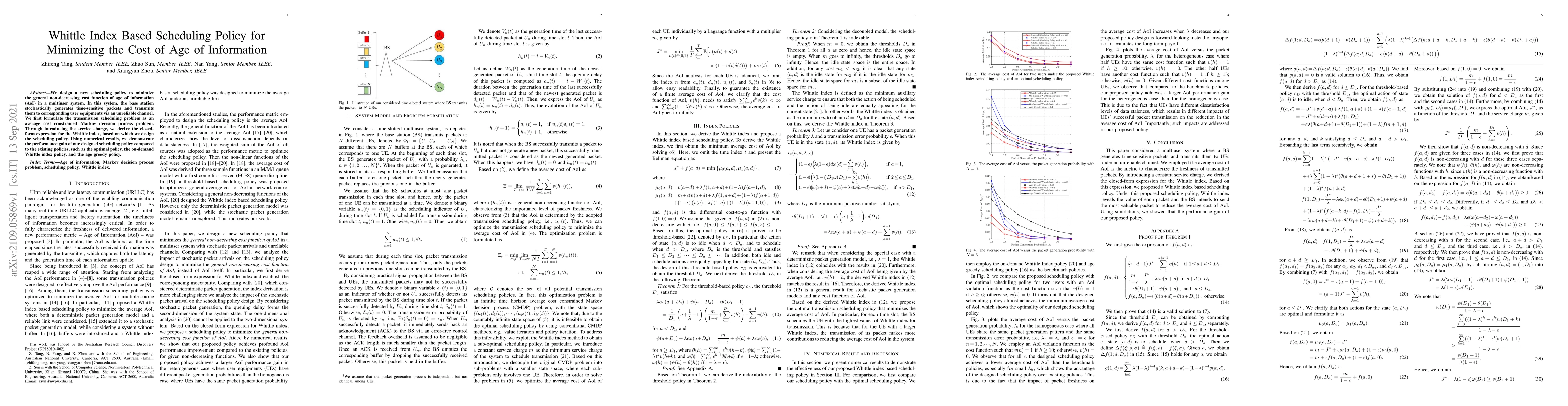 This paper proposes a new scheduling policy based on the Whittle index to minimize the cost of age of information in a multiuser system with unreliable channels. The authors derive a closed-form expression for the Whittle index and demonstrate superior performance compared to existing policies using numerical results.