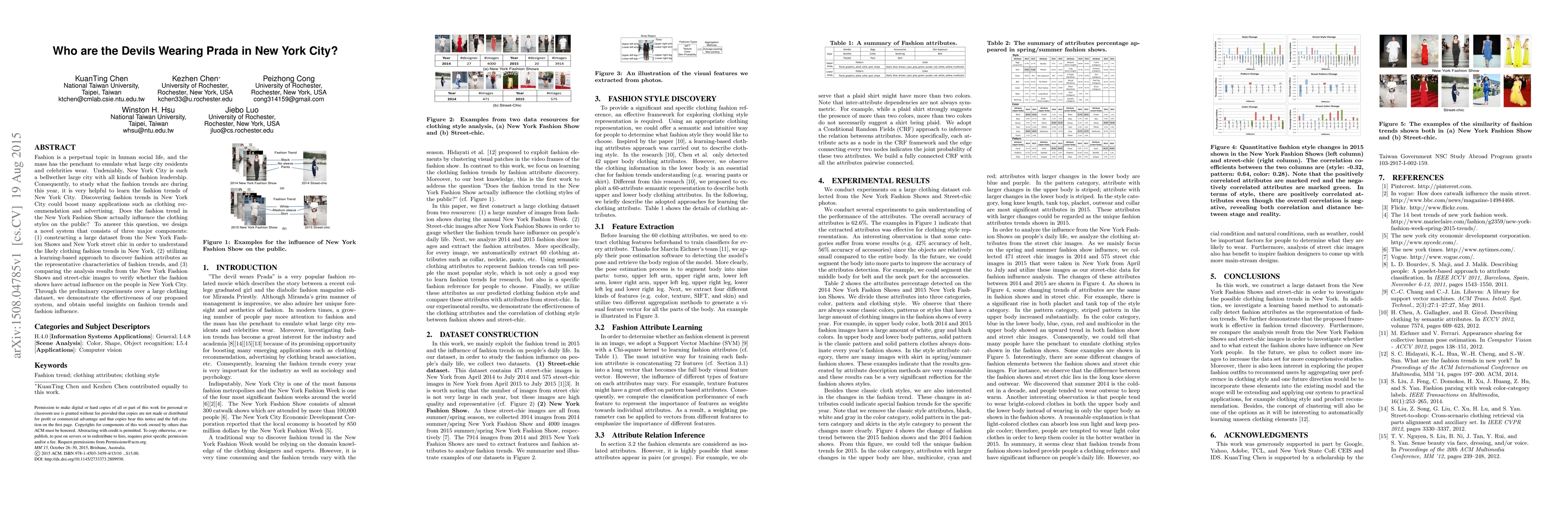 This paper investigates the influence of New York Fashion Show trends on the clothing styles of New York City residents by constructing a dataset from both fashion shows and street fashion, employing a learning-based approach to identify fashion attributes, and comparing these to determine the impact of high-fashion trends on public style. Preliminary results suggest the system effectively captures and analyzes fashion trends.