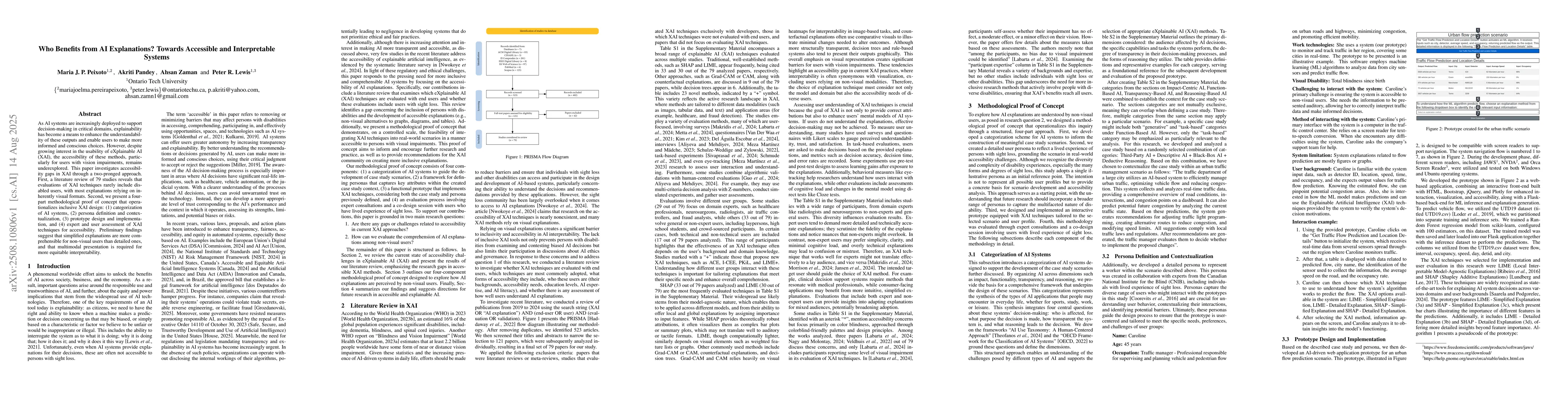 As AI systems are increasingly deployed to support decision-making in critical domains, explainability has become a means to enhance the understandability of these outputs and enable users to make more informed and conscious choices. However, despite growing interest in the usability of eXplainable AI (XAI), the accessibility of these methods, particularly for users with vision impairments, remains underexplored. This paper investigates accessibility gaps in XAI through a two-pronged approach. First, a literature review of 79 studies reveals that evaluations of XAI techniques rarely include disabled users, with most explanations relying on inherently visual formats. Second, we present a four-part methodological proof of concept that operationalizes inclusive XAI design: (1) categorization of AI systems, (2) persona definition and contextualization, (3) prototype design and implementation, and (4) expert and user assessment of XAI techniques for accessibility. Preliminary findings suggest that simplified explanations are more comprehensible for non-visual users than detailed ones, and that multimodal presentation is required for more equitable interpretability.