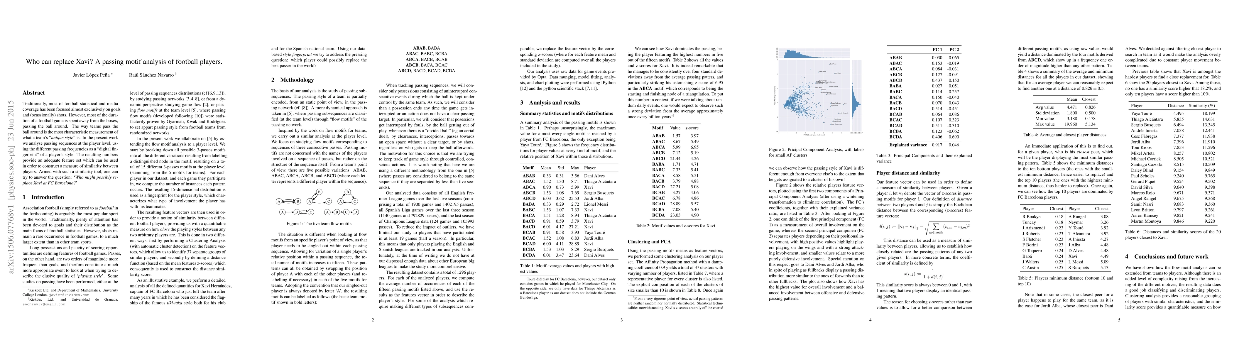 This paper analyzes passing sequences at the player level to determine a "digital fingerprint" of a player's style, using passing frequencies. It aims to identify potential replacements for Xavi at FC Barcelona by measuring similarity among players based on their passing patterns.
