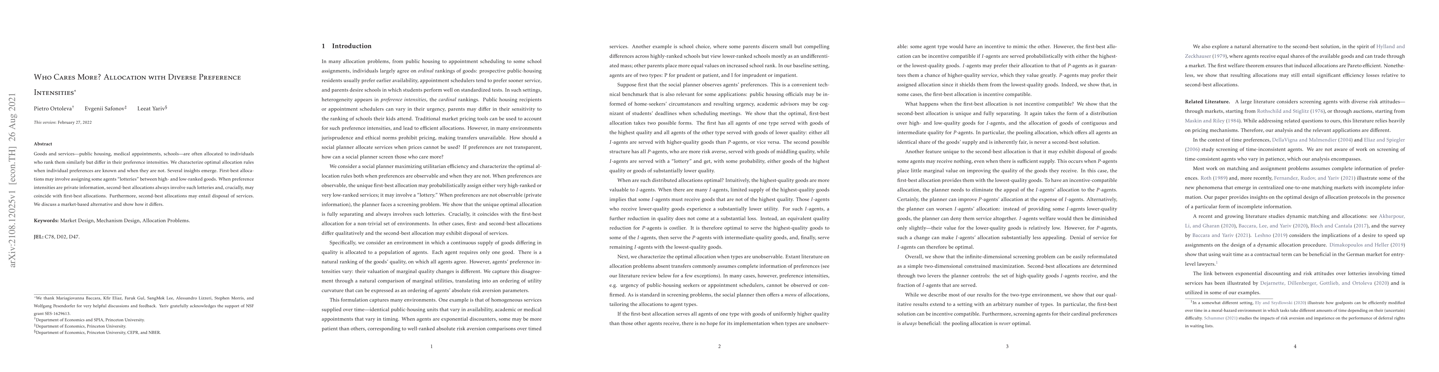 Goods and services -- public housing, medical appointments, schools -- are often allocated to individuals who rank them similarly but differ in their preference intensities. We characterize optimal allocation rules when individual preferences are known and when they are not. Several insights emerge. First-best allocations may involve assigning some agents "lotteries" between high- and low-ranked goods. When preference intensities are private information, second-best allocations always involve such lotteries and, crucially, may coincide with first-best allocations. Furthermore, second-best allocations may entail disposal of services. We discuss a market-based alternative and show how it differs.