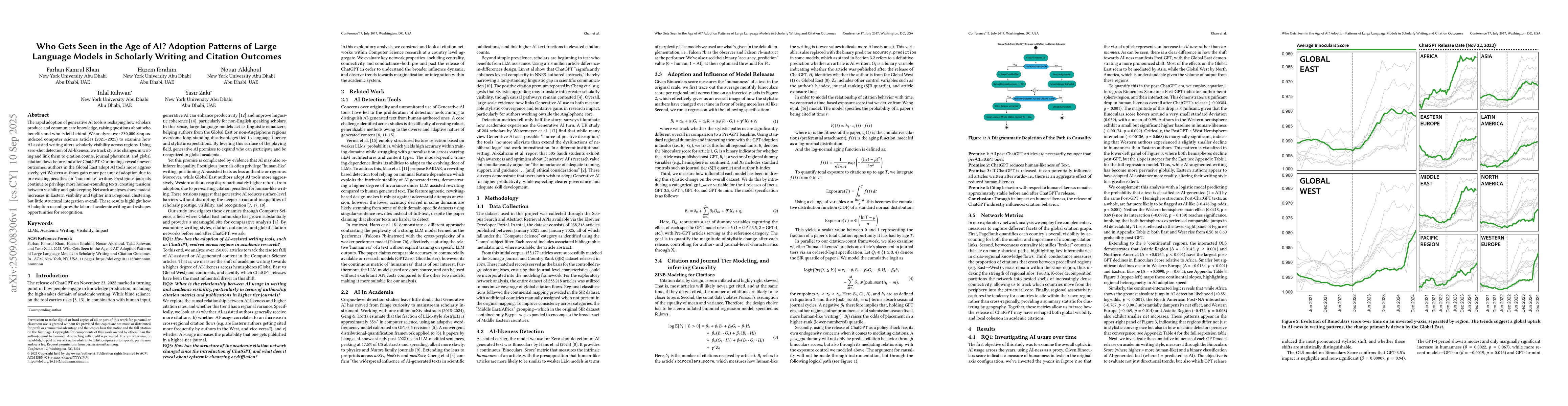 The rapid adoption of generative AI tools is reshaping how scholars produce and communicate knowledge, raising questions about who benefits and who is left behind. We analyze over 230,000 Scopus-indexed computer science articles between 2021 and 2025 to examine how AI-assisted writing alters scholarly visibility across regions. Using zero-shot detection of AI-likeness, we track stylistic changes in writing and link them to citation counts, journal placement, and global citation flows before and after ChatGPT. Our findings reveal uneven outcomes: authors in the Global East adopt AI tools more aggressively, yet Western authors gain more per unit of adoption due to pre-existing penalties for "humanlike" writing. Prestigious journals continue to privilege more human-sounding texts, creating tensions between visibility and gatekeeping. Network analyses show modest increases in Eastern visibility and tighter intra-regional clustering, but little structural integration overall. These results highlight how AI adoption reconfigures the labor of academic writing and reshapes opportunities for recognition.