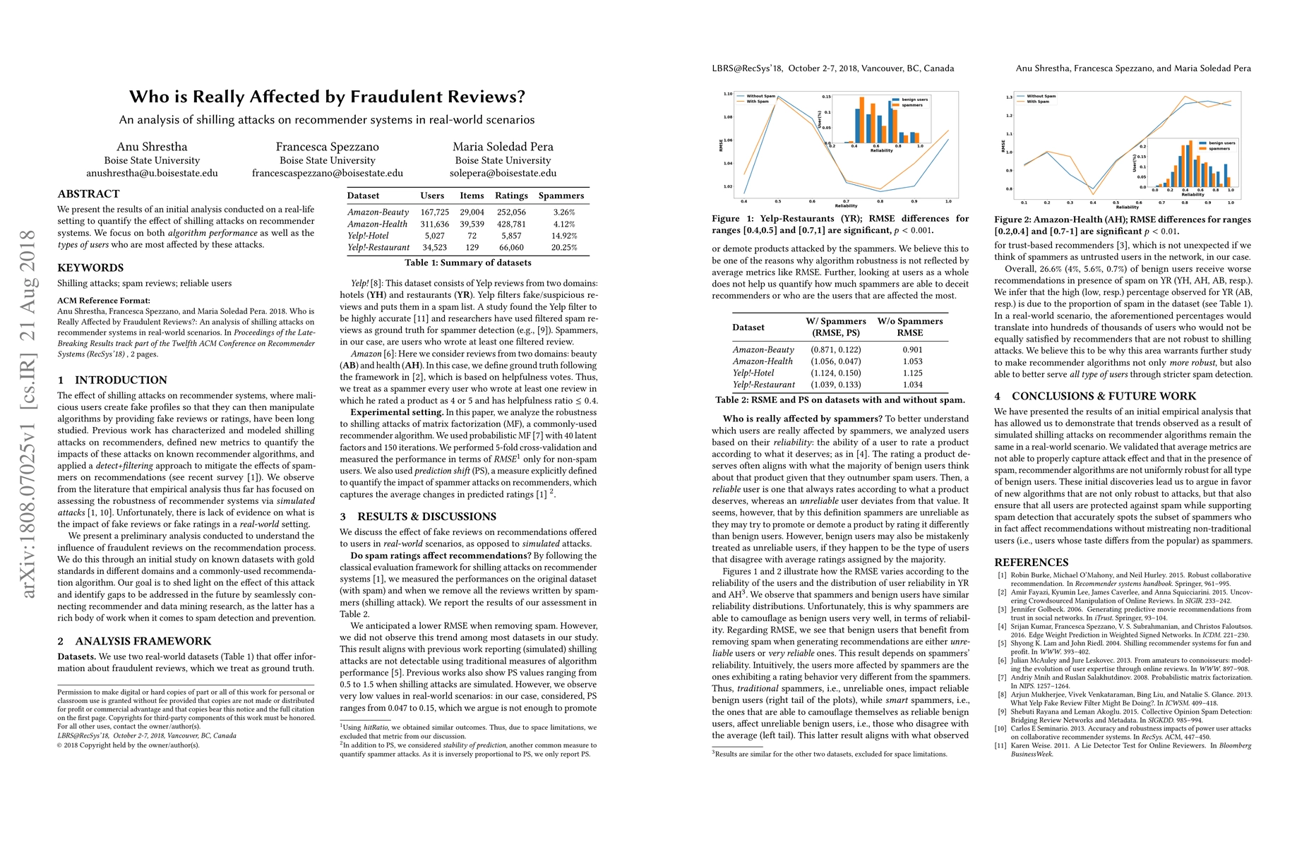 Researchers analyzed shilling attacks on recommender systems to understand their impact on algorithm performance and user types. They found that shilling attacks disproportionately affect users with low ratings and those using mobile devices.