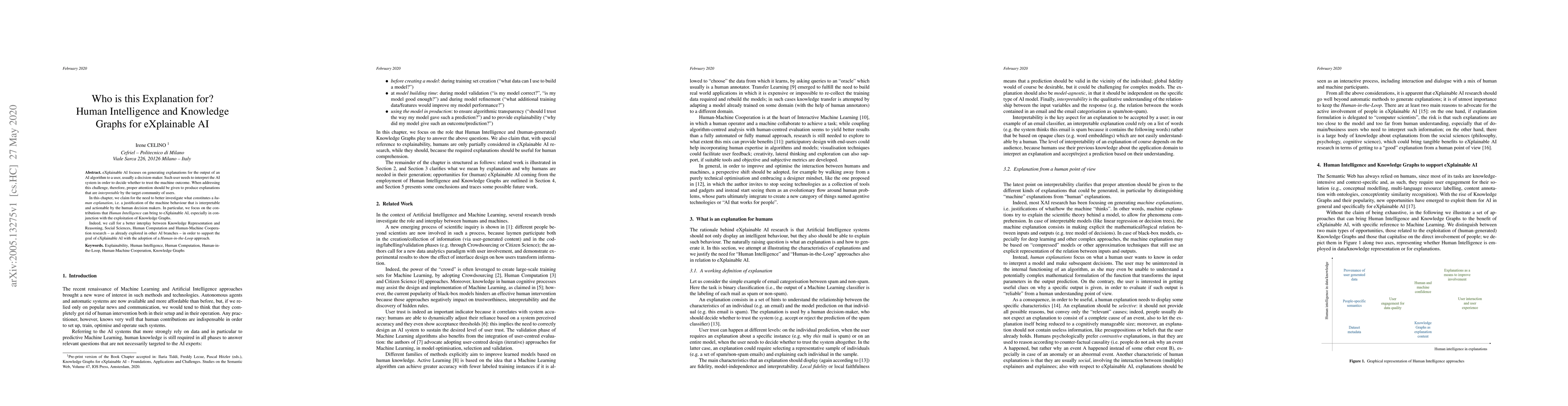 eXplainable AI focuses on generating explanations for the output of an AI algorithm to a user, usually a decision-maker. Such user needs to interpret the AI system in order to decide whether to trust the machine outcome. When addressing this challenge, therefore, proper attention should be given to produce explanations that are interpretable by the target community of users. In this chapter, we claim for the need to better investigate what constitutes a human explanation, i.e. a justification of the machine behaviour that is interpretable and actionable by the human decision makers. In particular, we focus on the contributions that Human Intelligence can bring to eXplainable AI, especially in conjunction with the exploitation of Knowledge Graphs. Indeed, we call for a better interplay between Knowledge Representation and Reasoning, Social Sciences, Human Computation and Human-Machine Cooperation research -- as already explored in other AI branches -- in order to support the goal of eXplainable AI with the adoption of a Human-in-the-Loop approach.