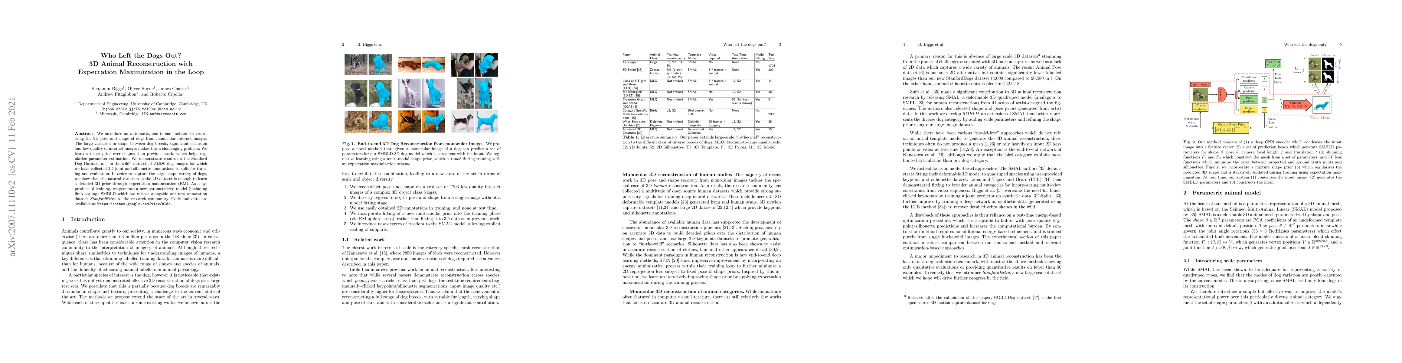 We introduce an automatic, end-to-end method for recovering the 3D pose and shape of dogs from monocular internet images. The large variation in shape between dog breeds, significant occlusion and low quality of internet images makes this a challenging problem. We learn a richer prior over shapes than previous work, which helps regularize parameter estimation. We demonstrate results on the Stanford Dog dataset, an 'in the wild' dataset of 20,580 dog images for which we have collected 2D joint and silhouette annotations to split for training and evaluation. In order to capture the large shape variety of dogs, we show that the natural variation in the 2D dataset is enough to learn a detailed 3D prior through expectation maximization (EM). As a by-product of training, we generate a new parameterized model (including limb scaling) SMBLD which we release alongside our new annotation dataset StanfordExtra to the research community.